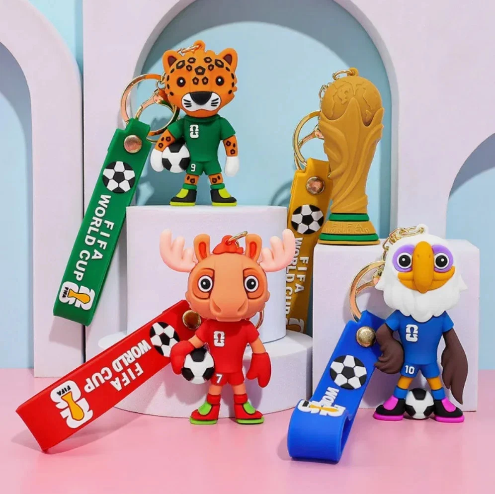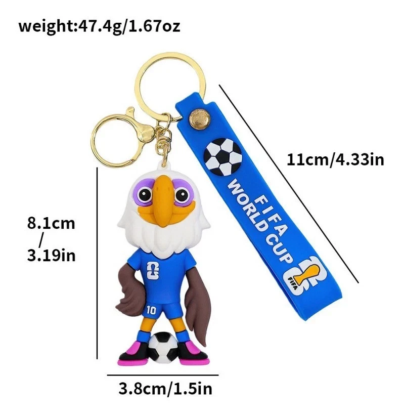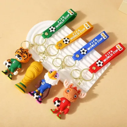 2026 World Cup Cartoon Mascot 4 Keychain Soccer Trophy Cute Animal Gift Fans