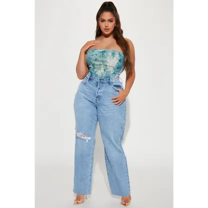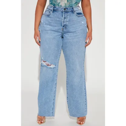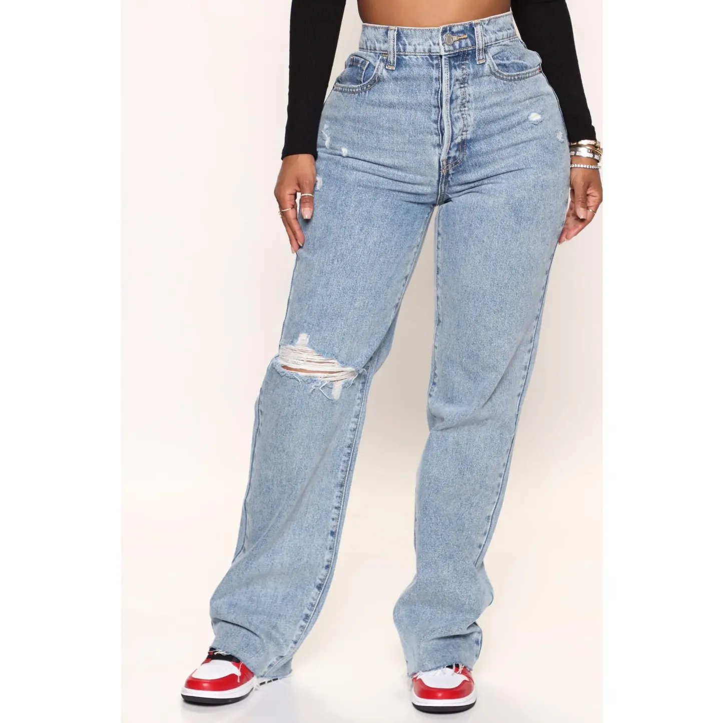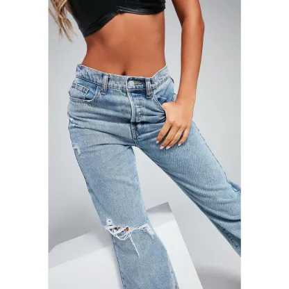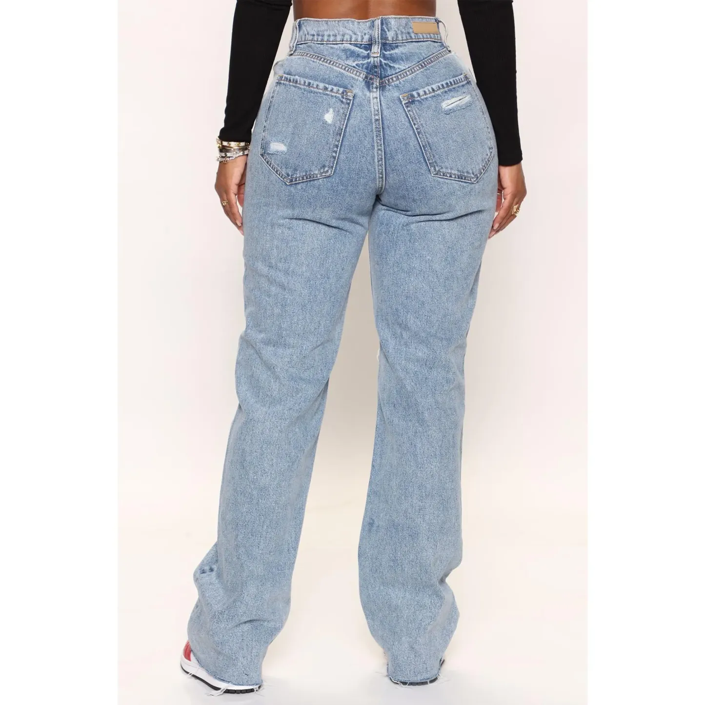 Topanga 90's Ripped Straight Leg Jeans - Medium Wash