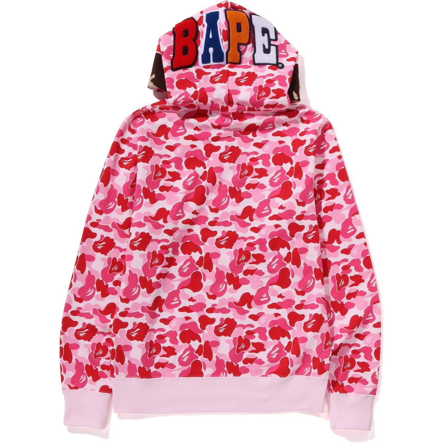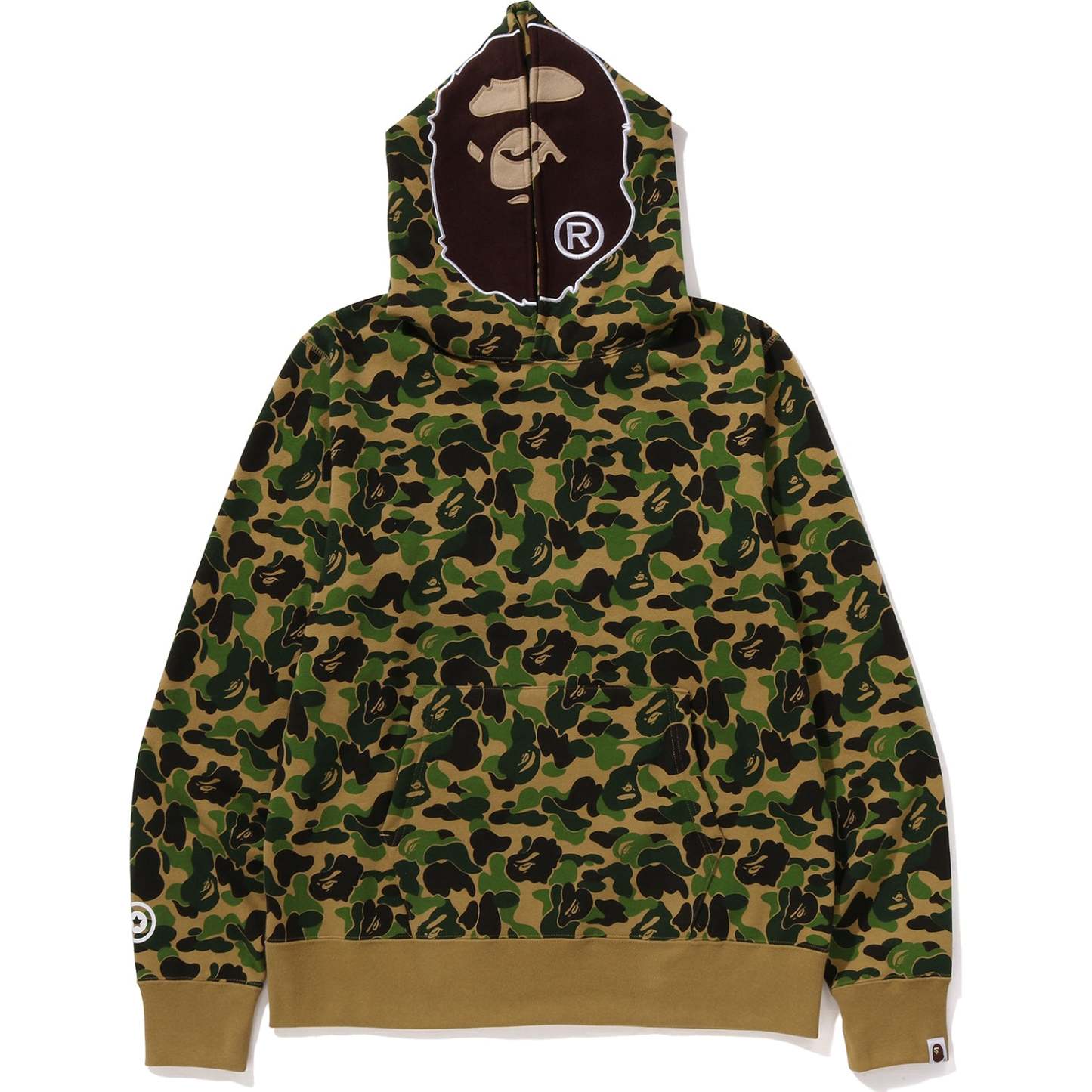 This ABC CAMO pullover hoodie is made from soft brushed cotton fleece. It features the APE FACE on the hood front and the BAPE logo on the back. A star print decorates the right sleeve, and the left sleeve has an APE HEAD label. The hood’s drawstring lets you adjust the fit, and the regular cut ensures comfortable everyday wear.