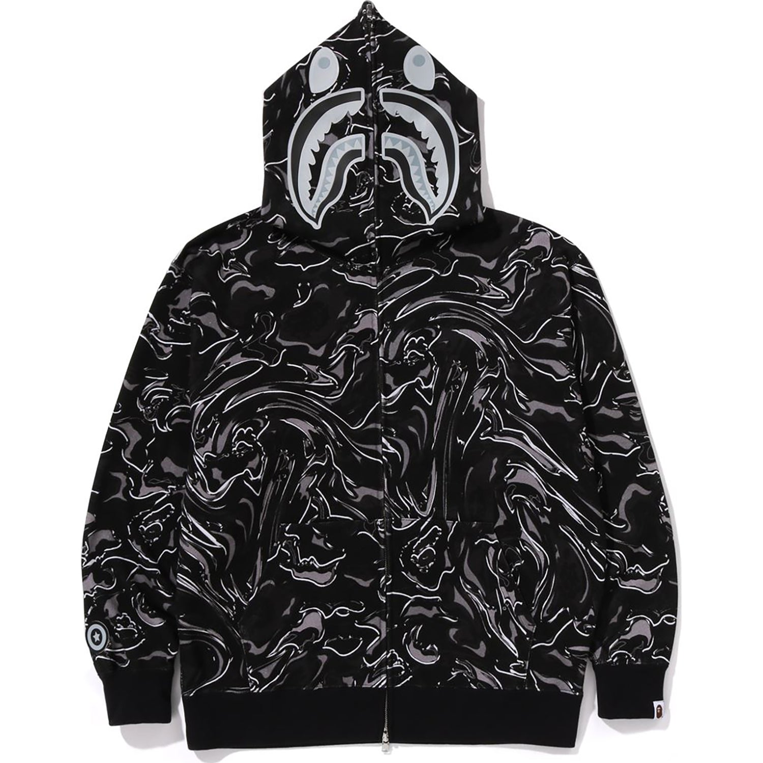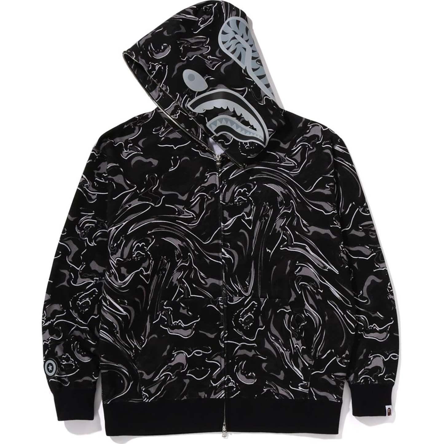 MARBLING CAMO SHARK RELAXED FIT FULL ZIP HOODIE MENS