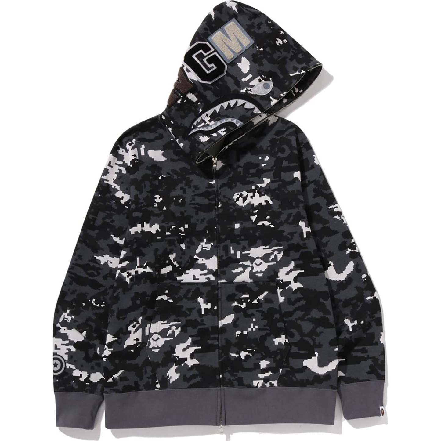 MULTI PIXEL CAMO SHARK REGULAR FIT FULL ZIP HOODIE MENS