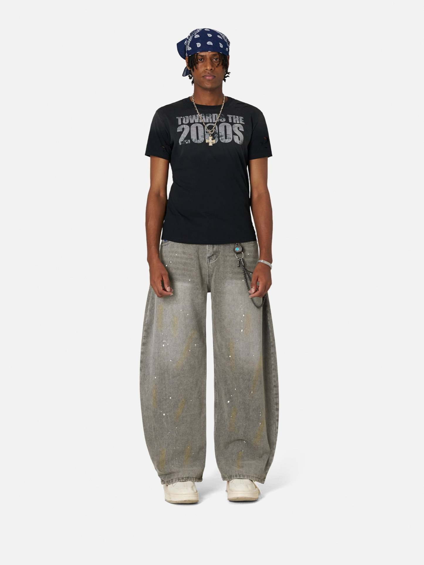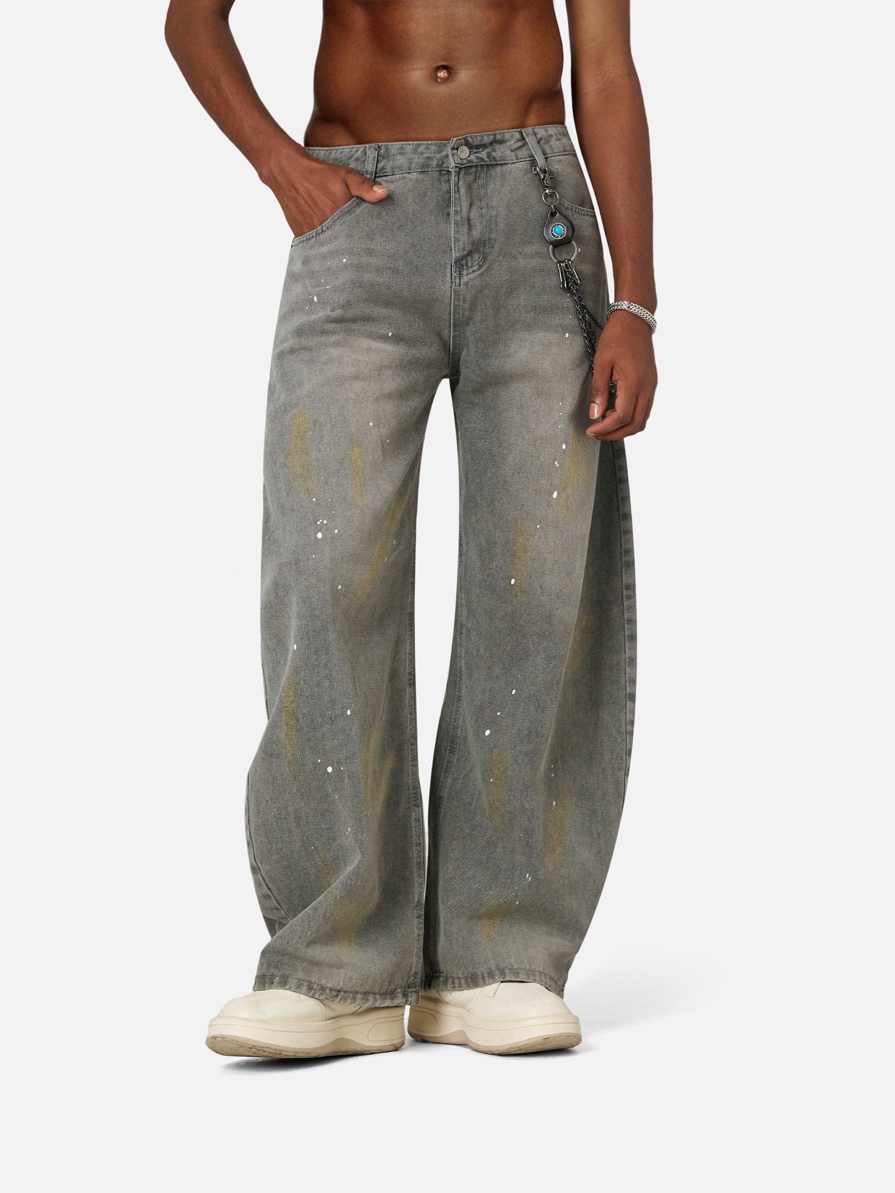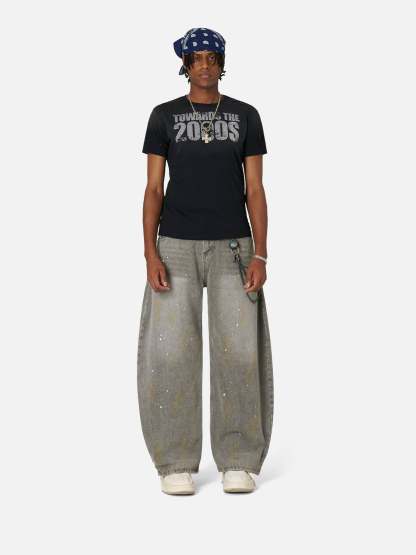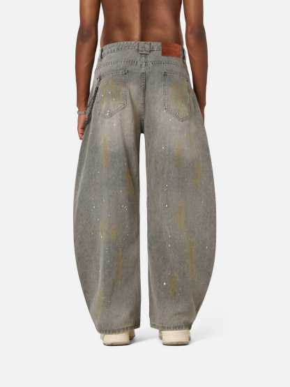 The Jeans bring a painterly edge to streetwear with bold wash fades and raw ink-like speckles. The barrel-leg silhouette is wide, wild, and ready to make noise.