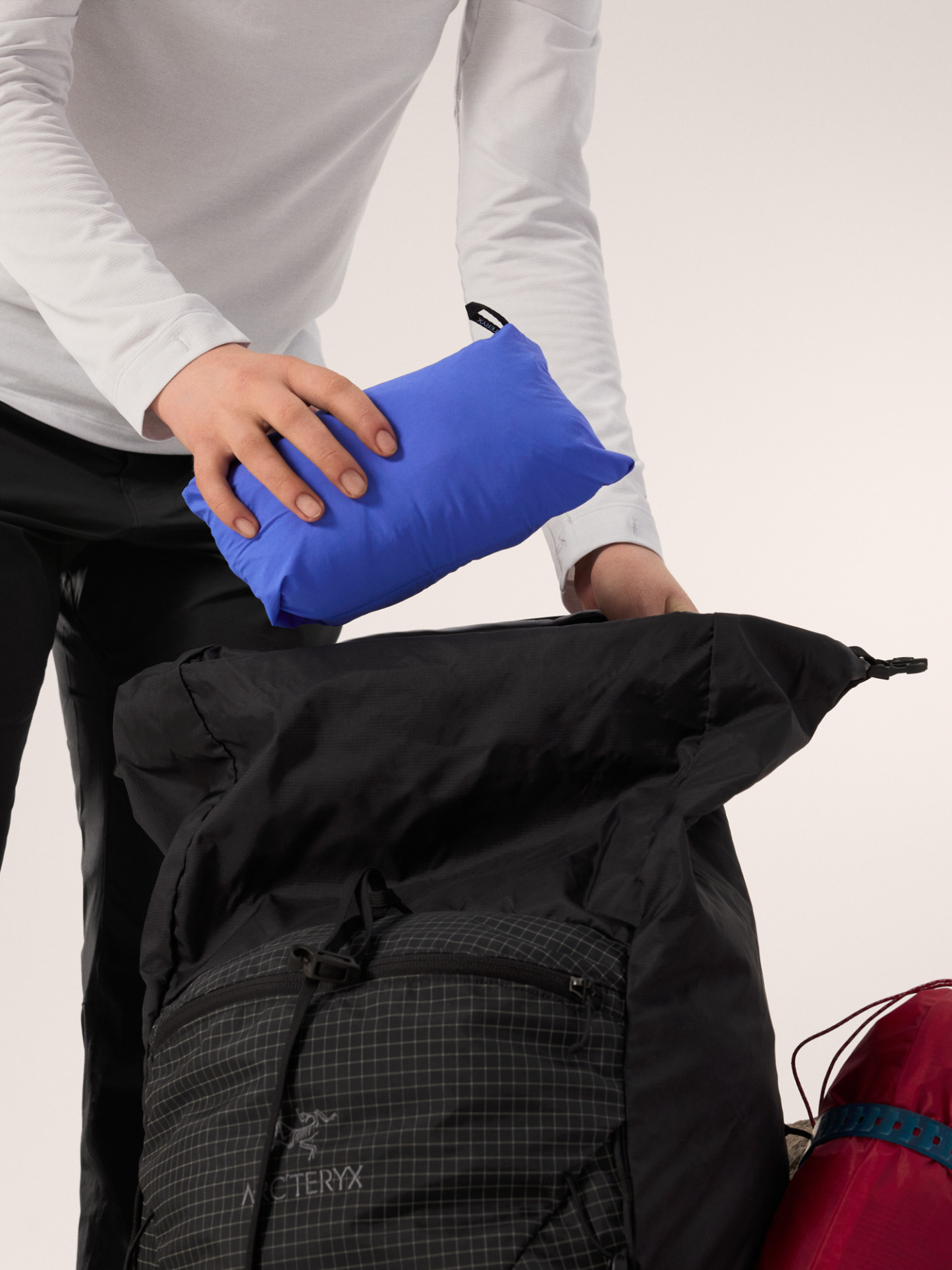 - Body: Recycled 20d nylon plain weave weft stretch FC0 DWR, 58gsm - 88% Nylon, 12% Elastane