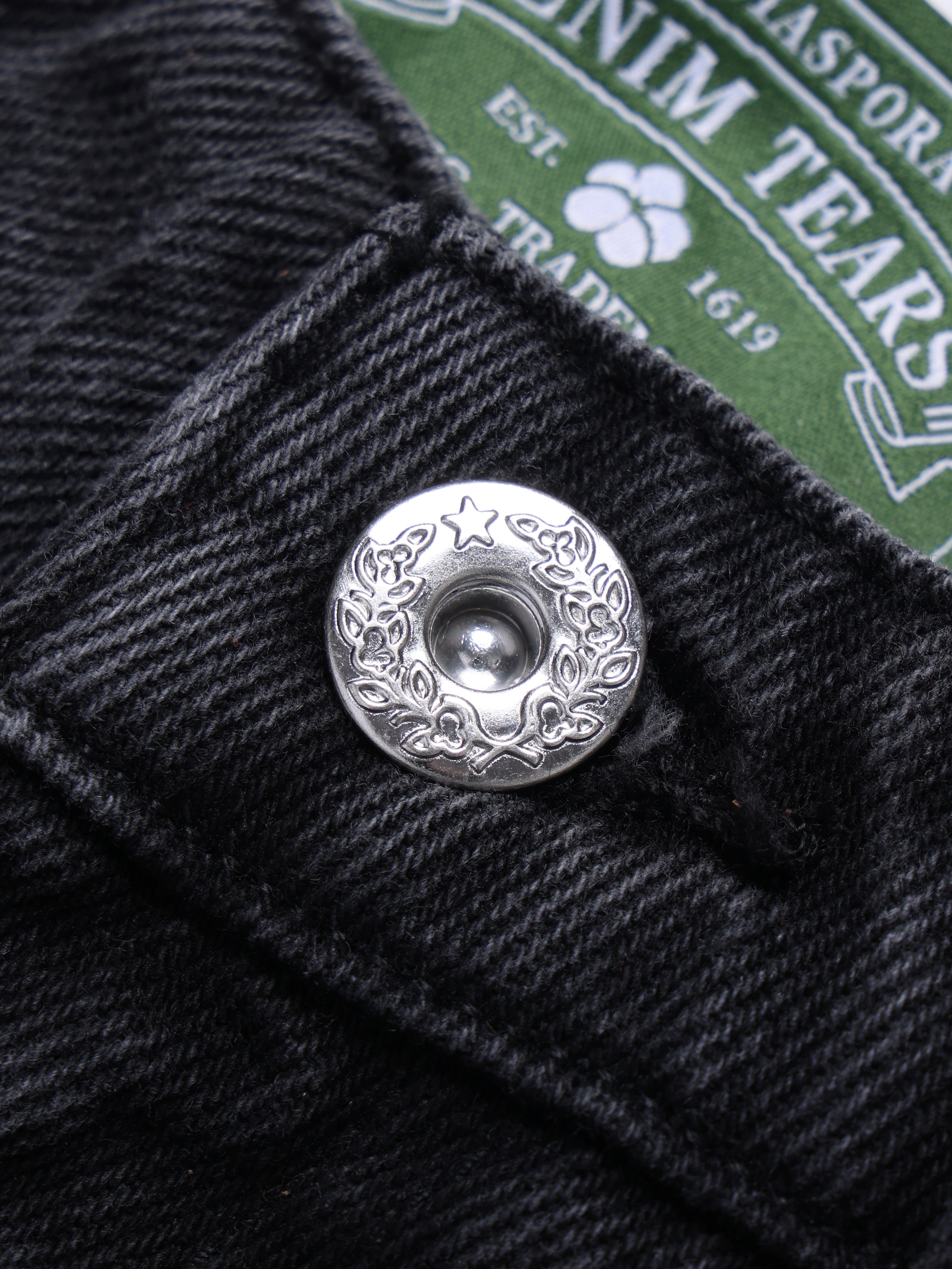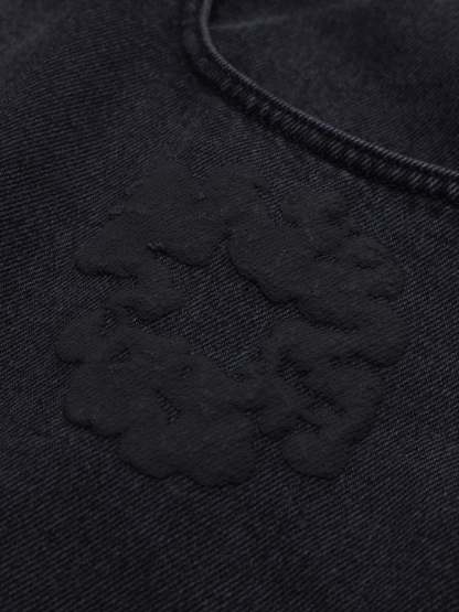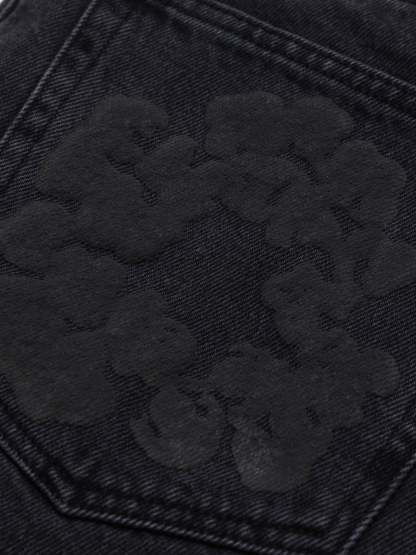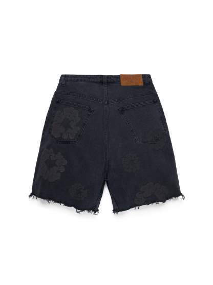 Black Mono Cotton Wreath Denim Shorts