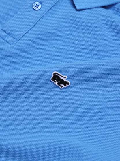 • Blue knit polo shirt • 100% cotton • Regular fit • Made in Portugal • Machine wash at 30°C with similar colors • Do not bleach, do not tumble dry, cool iron