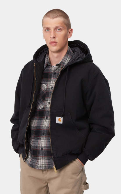 The OG Active Jacket is constructed from the 12oz organic cotton "Dearborn" Canvas. The jacket has a loose, boxy fit and diamond quilted lining, along with an adjustable hood and the classic woven Carhartt WIP logo on the left hand pocket. The garment is triple-stitched at vital stresspoints for durability.