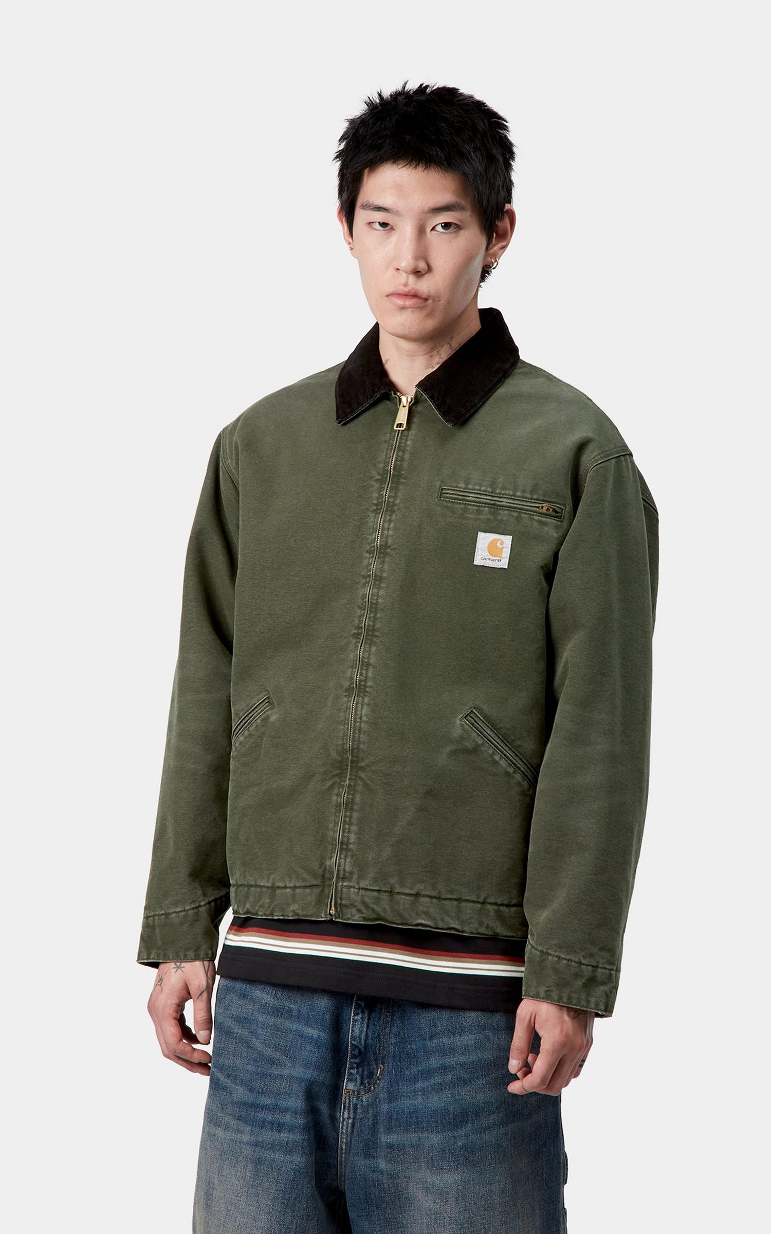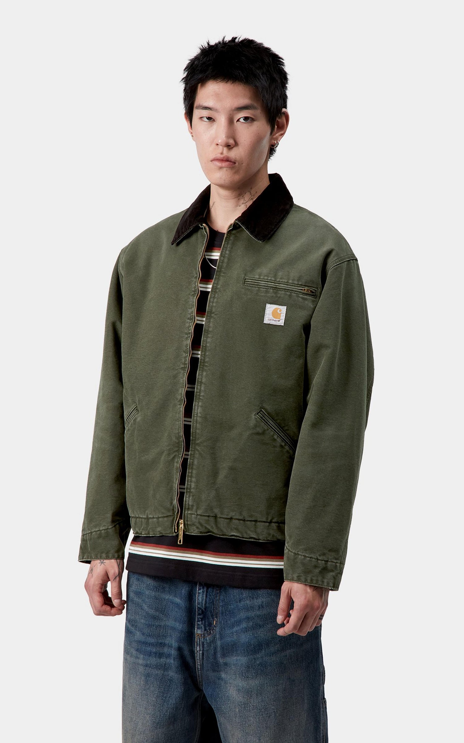 The OG Detroit Jacket is made in the original loose fit from unlined, heavyweight Dearborn Canvas. A two-way front zip, corduroy collar, and zipped chest pocket offer tactile touches. The item also has an inside chest pocket and two front welt pockets. An adjustable bottom band and cuffs offer a more adaptable fit. A woven Square Label completes the design.