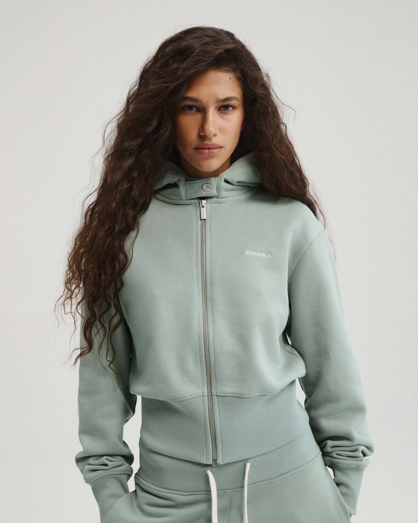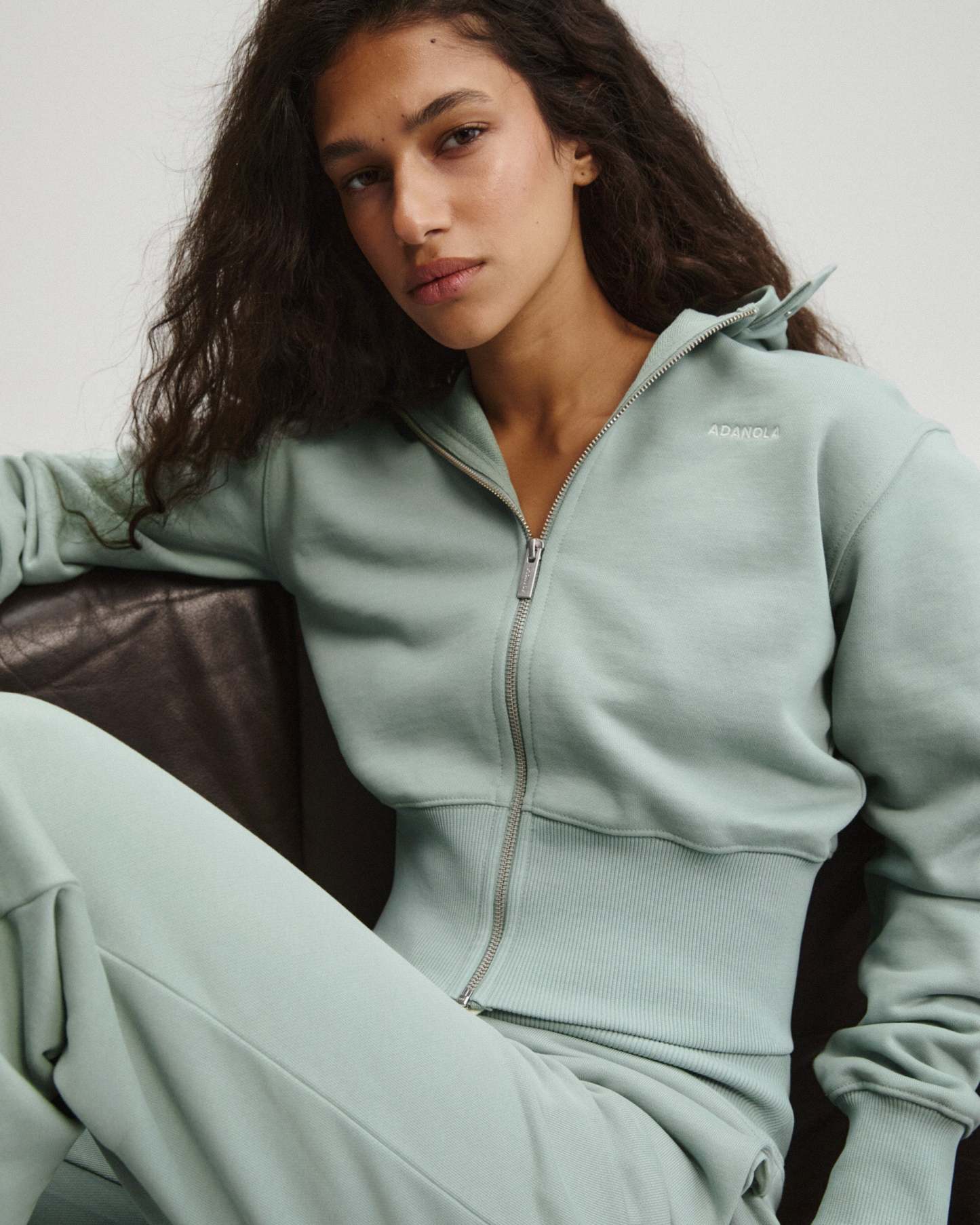 Cinch Hem Full Zip Hoodie - Cloud Blue