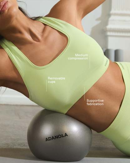 For on the go and in the flow. Adanola Seamless designed to move with you. Introducing the newest addition to our Seamless category. Meet Classic Seamless; designed to gently support you on and off the mat. The Classic Racer Back Bra features subtle ribbed details and tonal branding. The fabric offers a smooth, sculpting fit with medium compression and medium support for all day comfort. Style your Racer Back Bra with the Classic Seamless Leggings for a complete look.