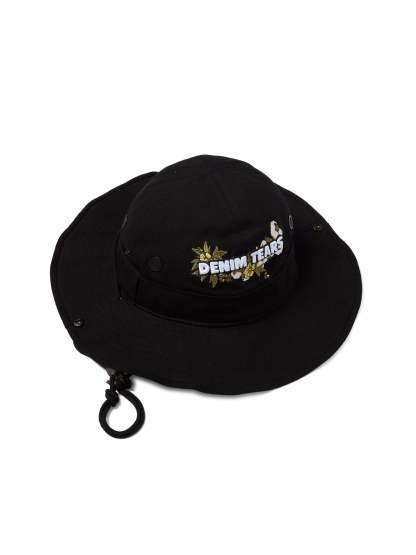 Cotton Floral Logo Bucket Hat Black