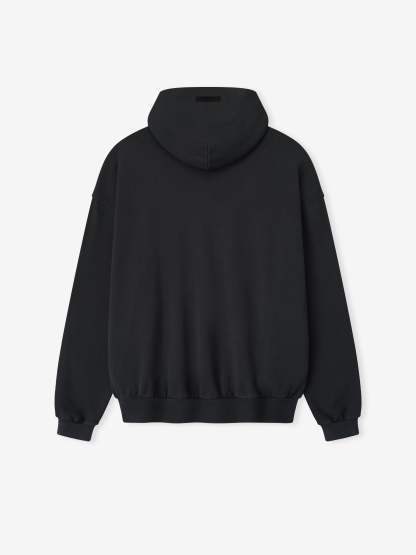 The 90's Fit Hoodie is made from 380gsm core fleece to provide ideal comfort and structure. The piece features a 90s fit with oversized proportions and dropped shoulders. A Fear of God Essentials screen print is branded across the front. Details include a double-layer hood, side pockets, rib-knit cuffs and waist-hem. A Fear of God Essentials rubberized label is stitched on the hood.
