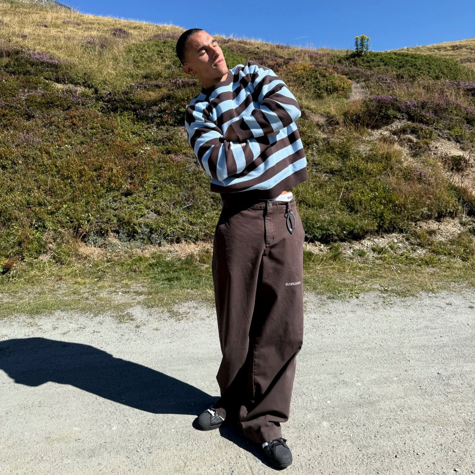 Fall / Striped Cotton Knit - Dusty Blue & Brown
