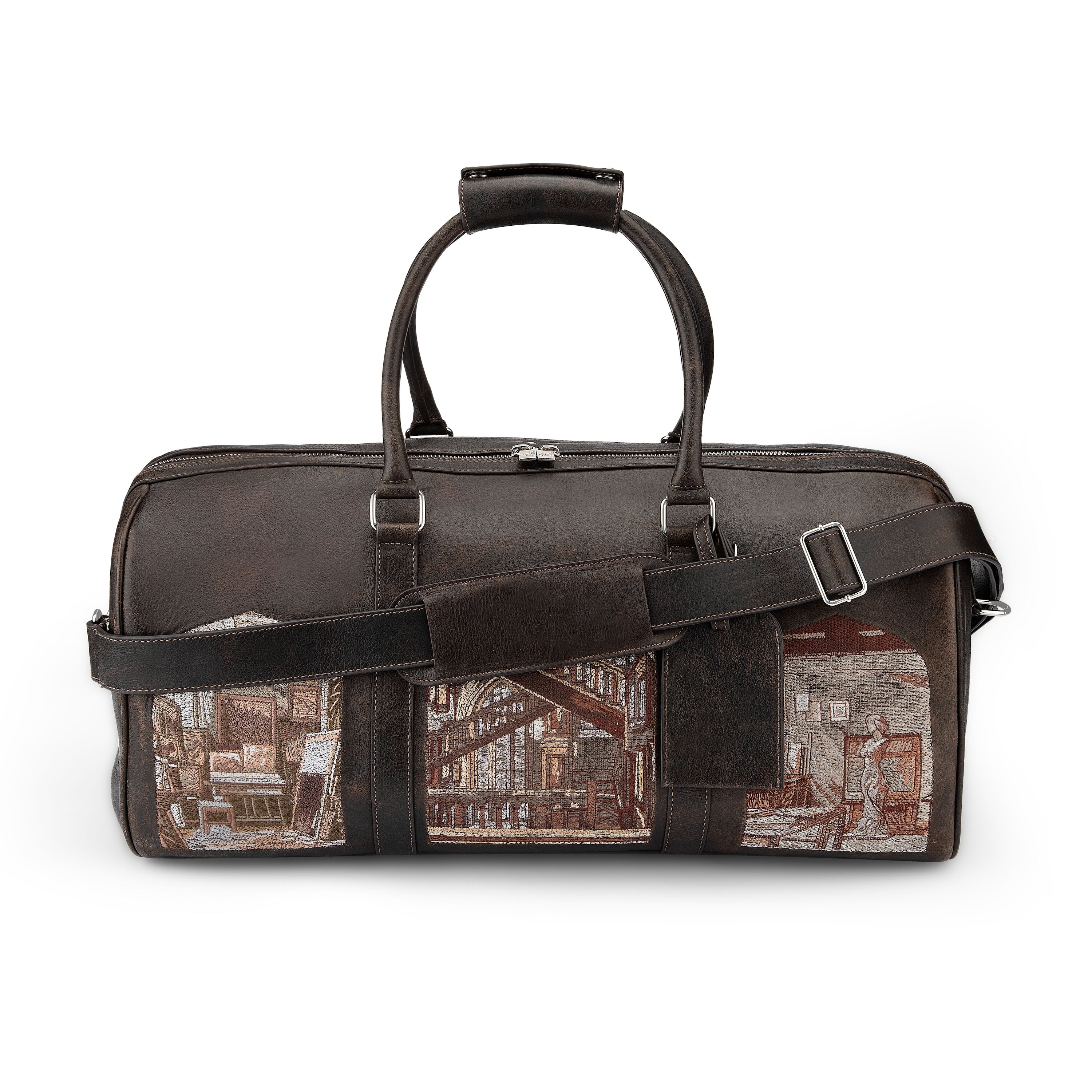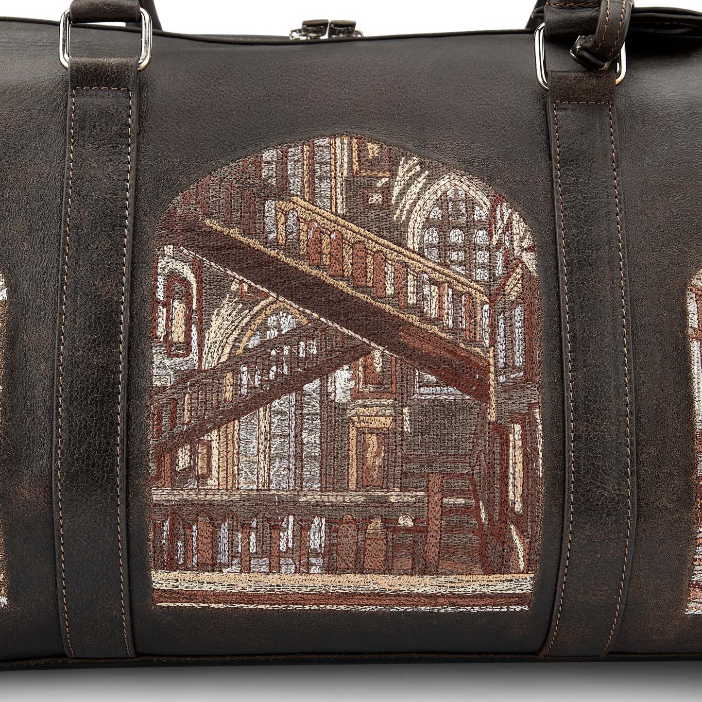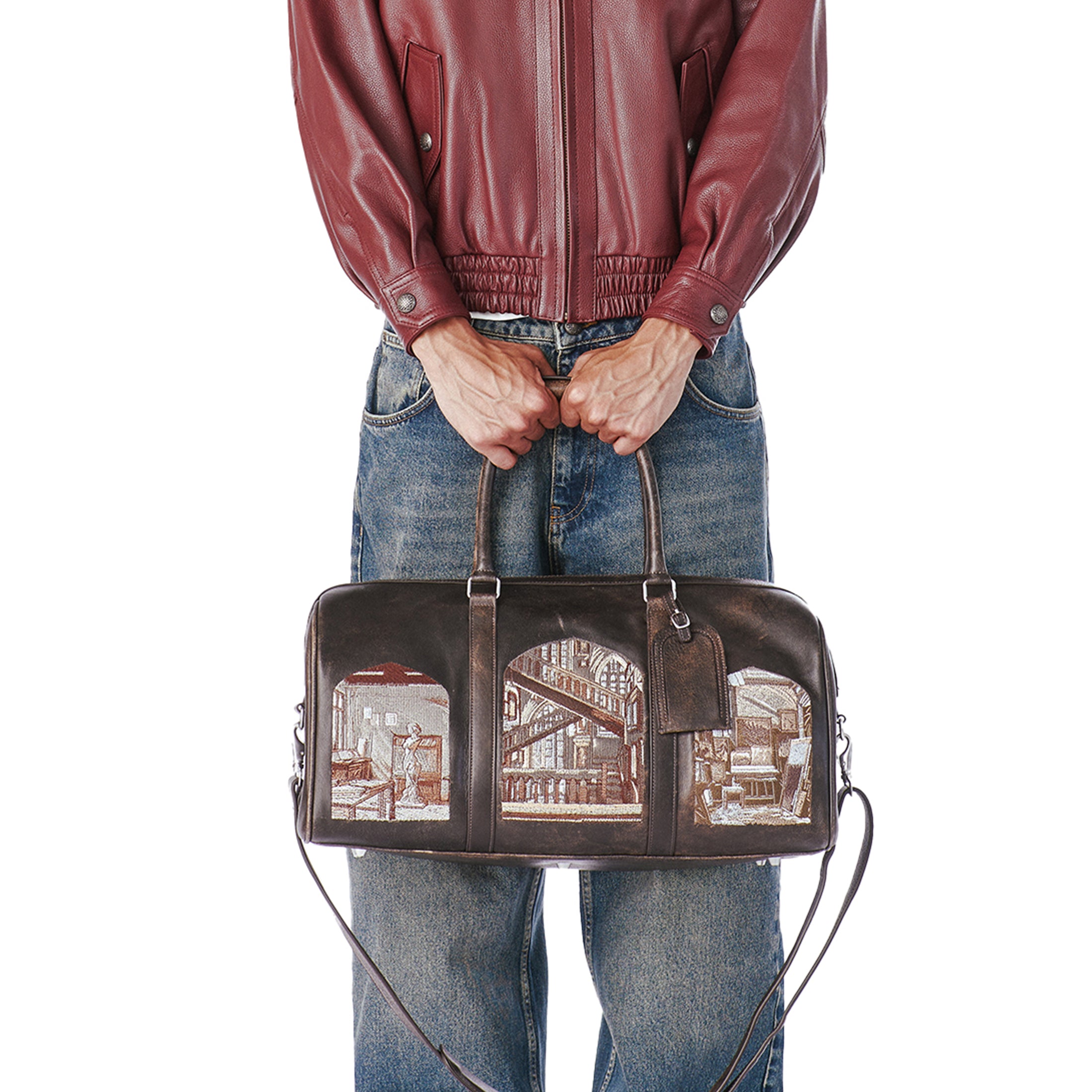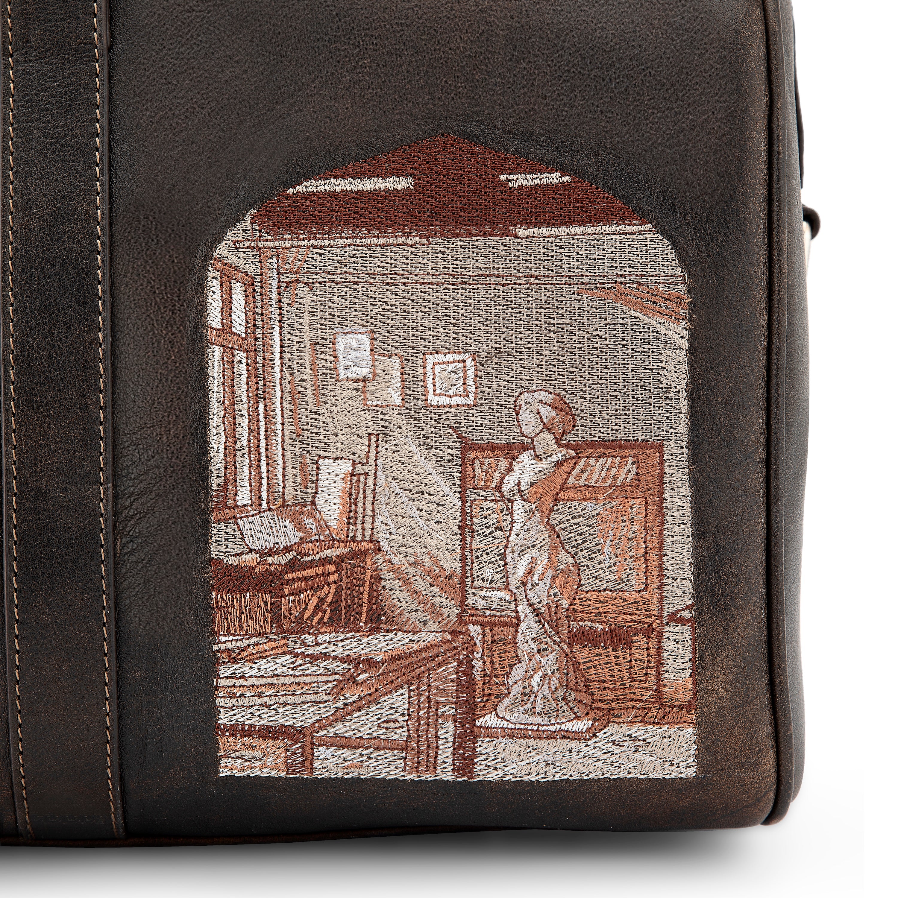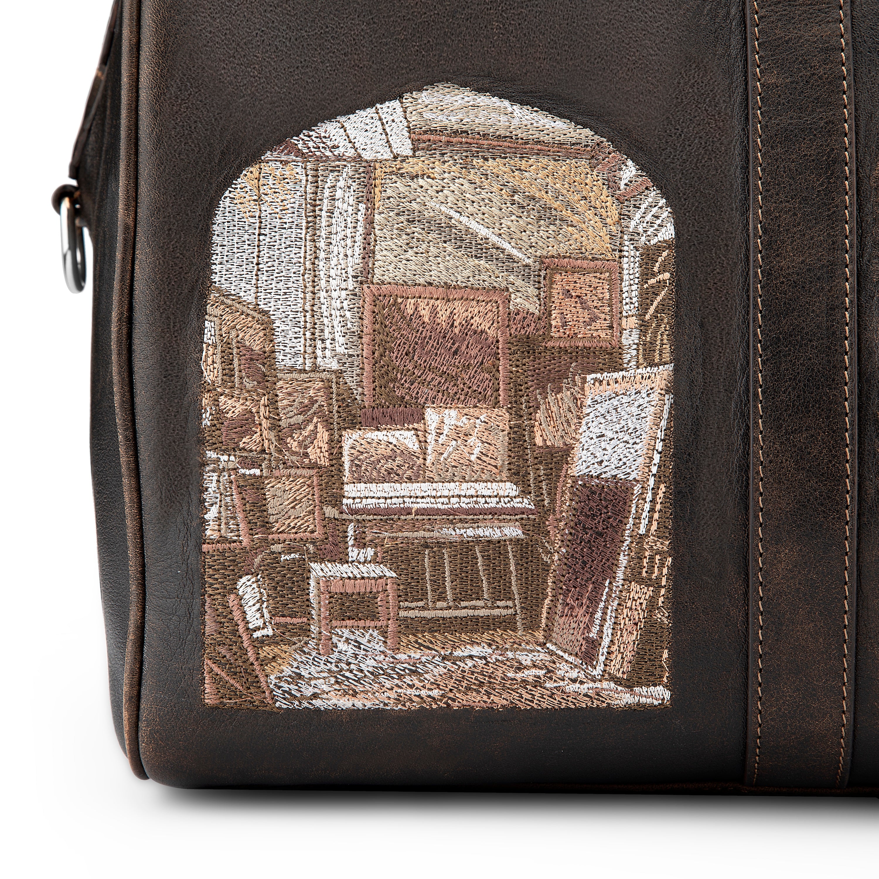 genuine leather / fully embroidered design on both sides / measurements 50x32x22cm