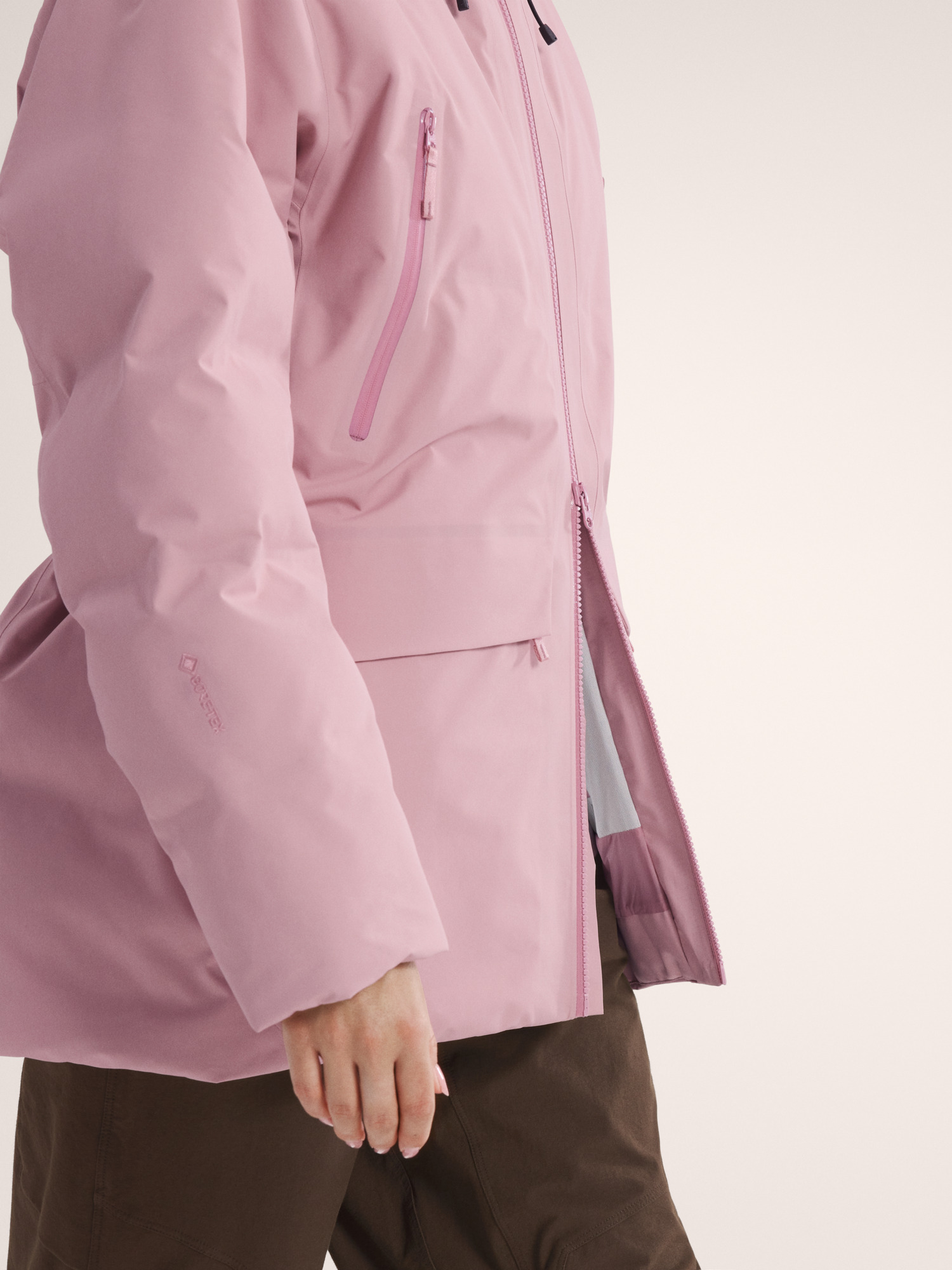 - Body: 80d 3L GORE-TEX ePE with C-KNIT™ backer, plain weave recycled nylon, FC0 DWR - 100% Nylon with ePE and PU Membrane