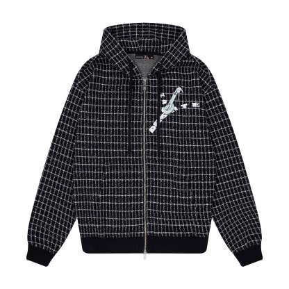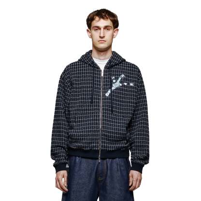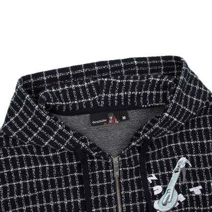390gsm tweed fabric / 46% polyester 40% cotton 14% cv / embroidery on front / with double-slided YKK zipper / cropped fit / fits true to size