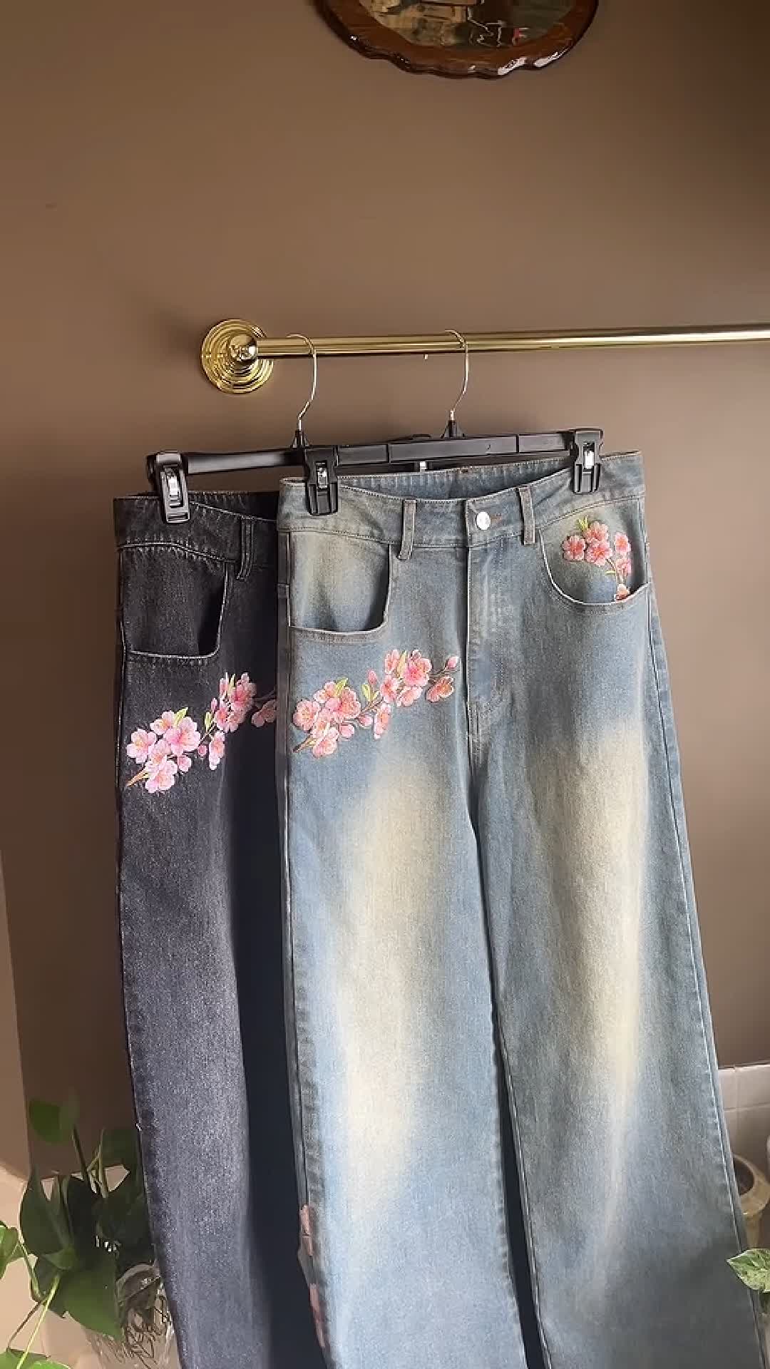 Step into a world of elegance with our floral-embroidered jeans. These beautifully crafted pieces blend classic denim with delicate cherry blossom designs, bringing a touch of nature to your wardrobe. Perfect for any season, they offer both comfort and style, ensuring you stand out with grace and charm wherever you go. Embrace the beauty of nature with every step. ???