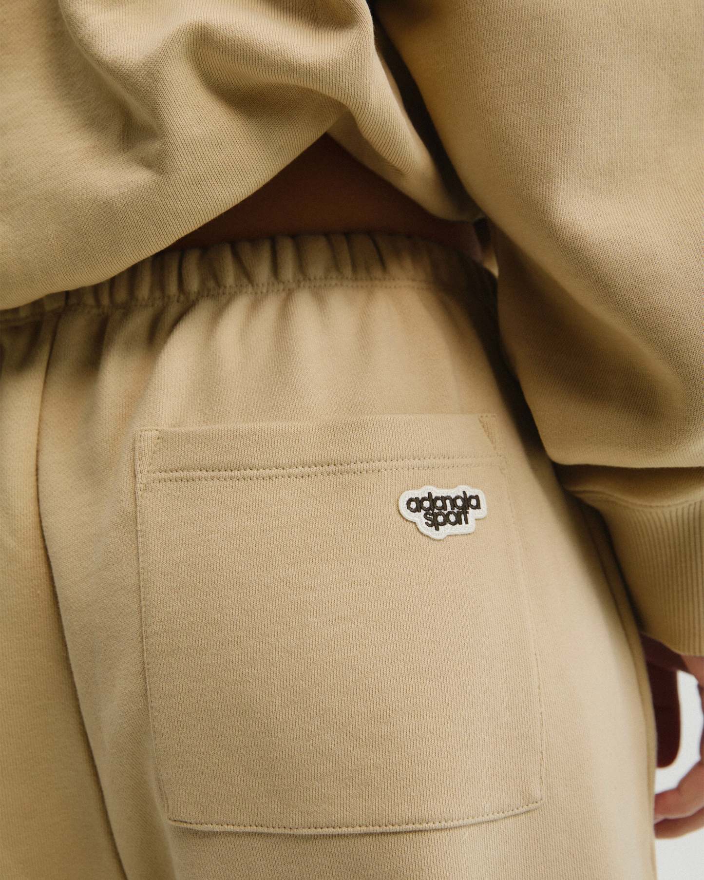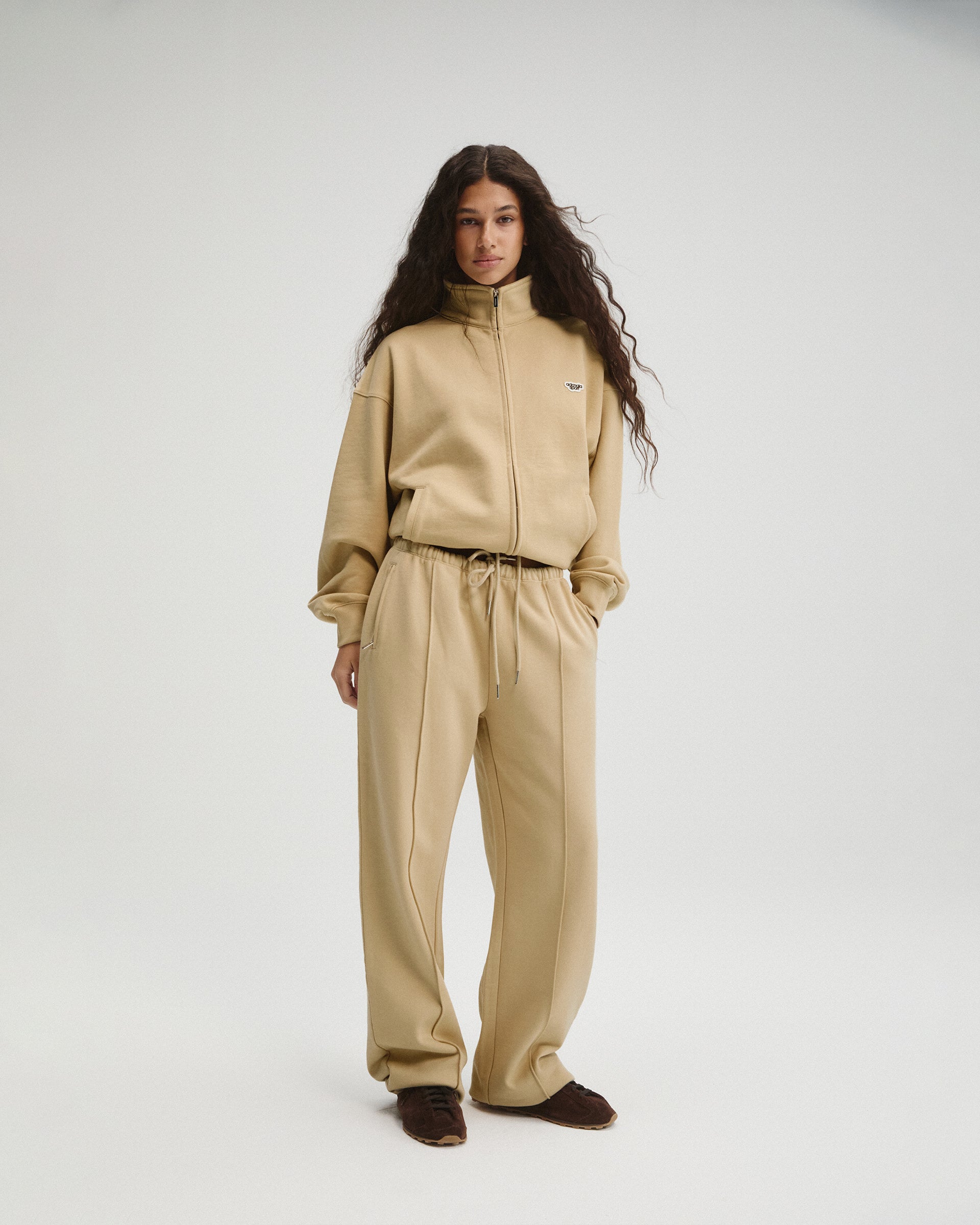 Pintuck Straight Leg Sweatpants - Caramel Beige