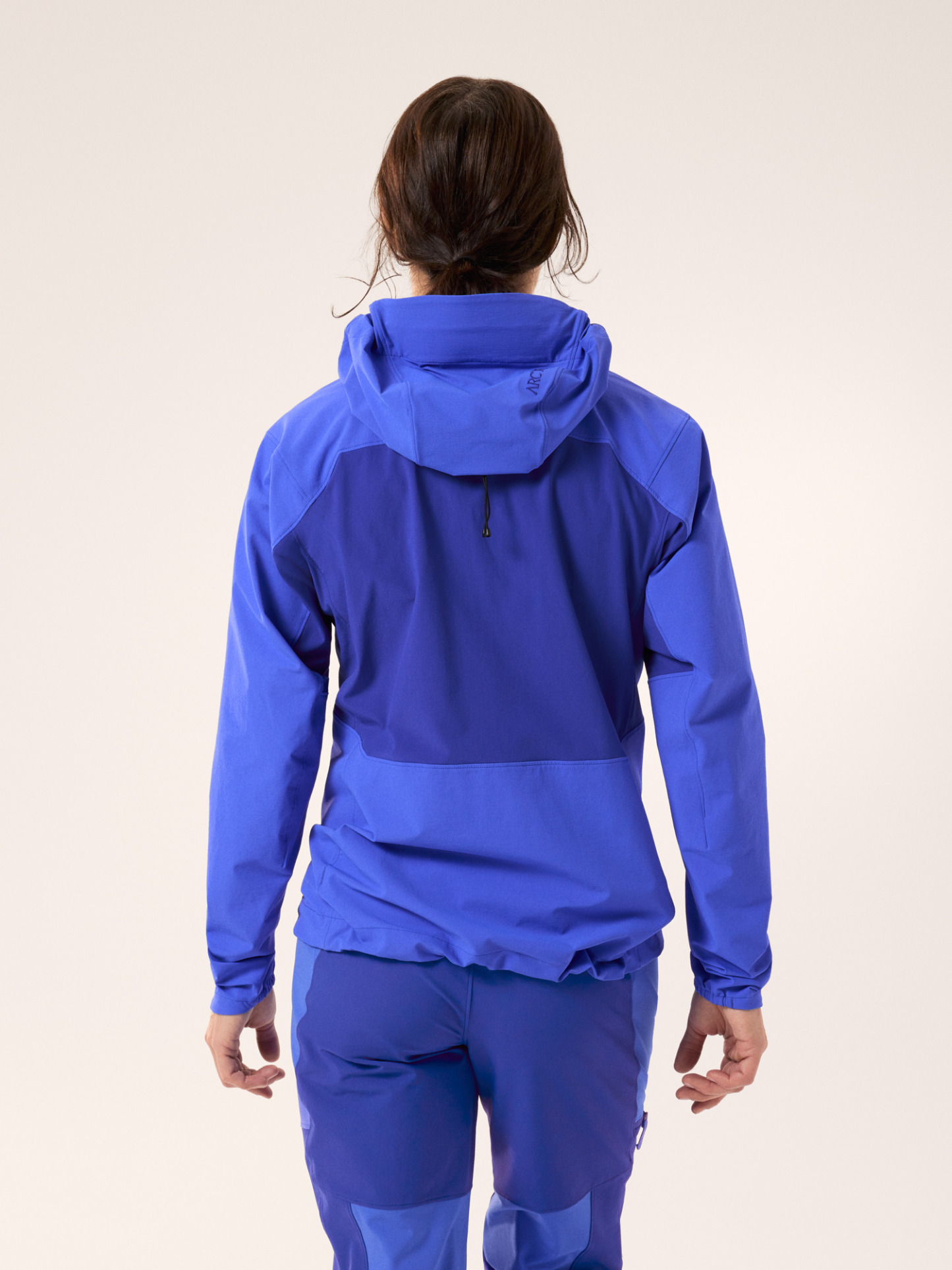 Whether it's your first alpine climb or most technical-to-date, the Psiphon has you covered. Our women's-specific Hybrid Mapping technology places fabrics where they're needed most: durable, breathable softshell at the torso, shoulders, hood, and waist protects you from wind, rain, and rock and lighter, highly air permeable fabrics under the arms to dump heat during key moves.