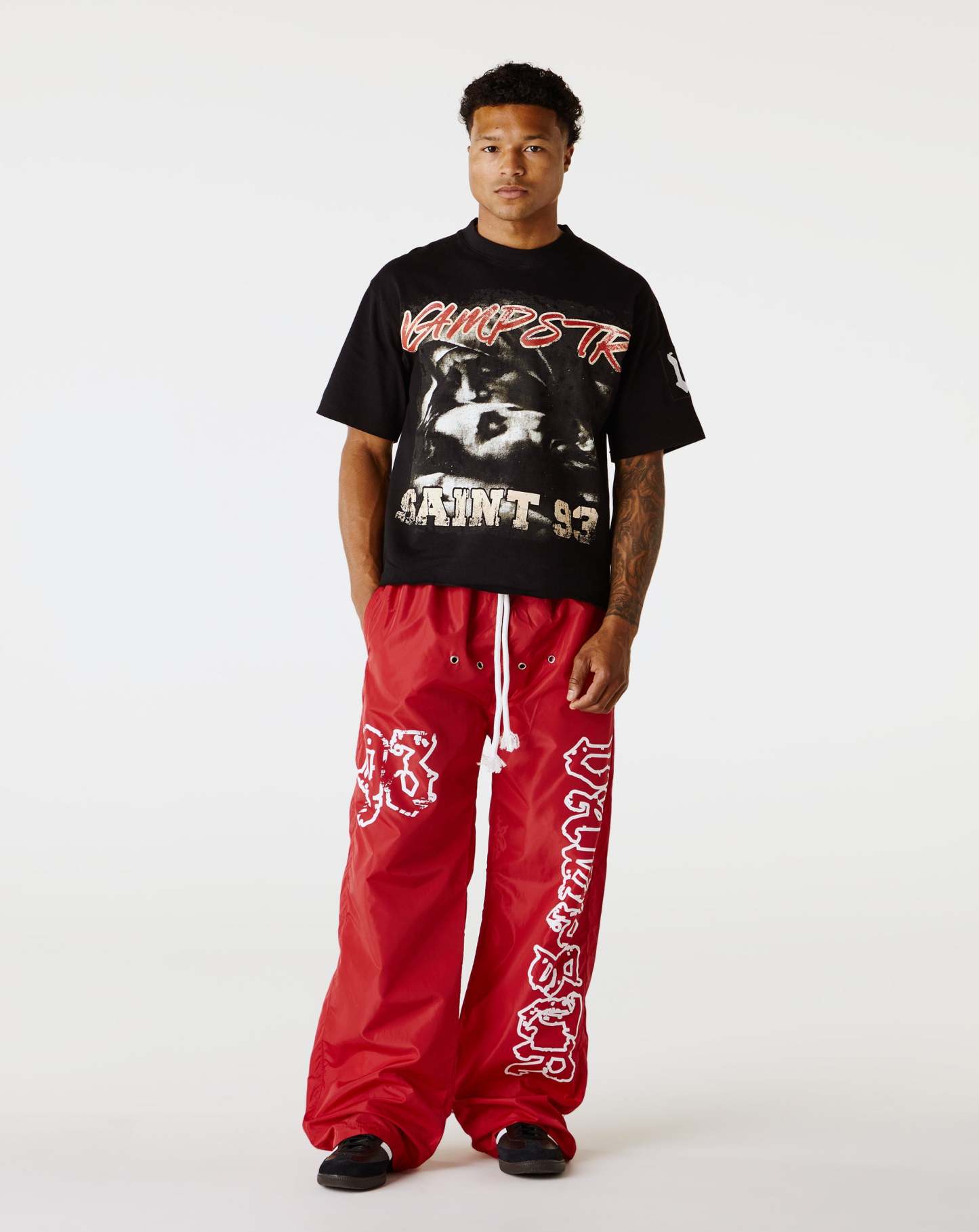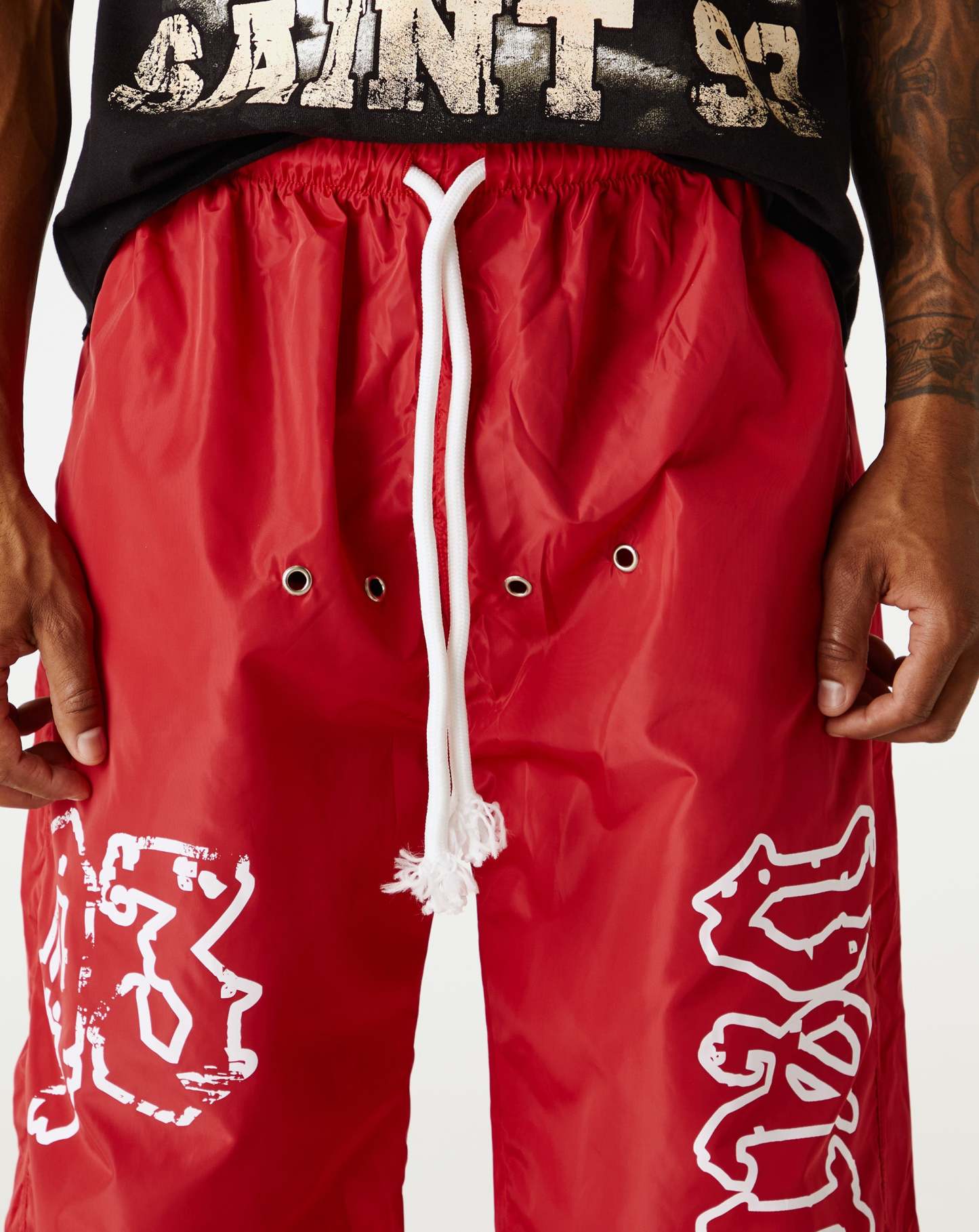Concealed Rope string at elasticized waistband· Two-pocket styling· Screen printed at front and back leg
