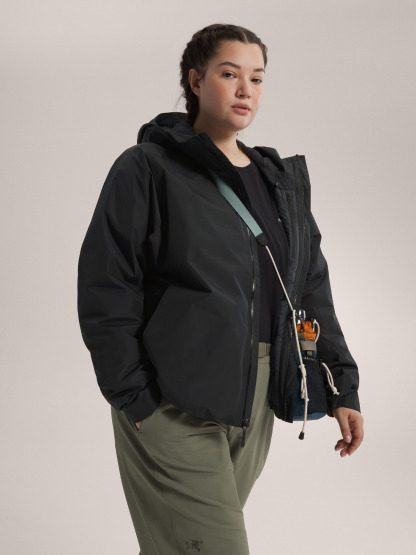 Targeted weather protection, down's warmth, stretch freedom – you pull it on for the hike, you end up wearing it all day. Hybrid Mapping Technology puts a PFAS-free GORE-TEX fabric on the body and sleeves. Breathable Fortius 1.0 softshell on the back and under the arms adds ventilation and stretch. The responsibly sourced 750-fill goose down is placed in box-wall baffles to maximize its efficiency, and low-profile Coreloft™ synthetic insulation is used in the side panels.