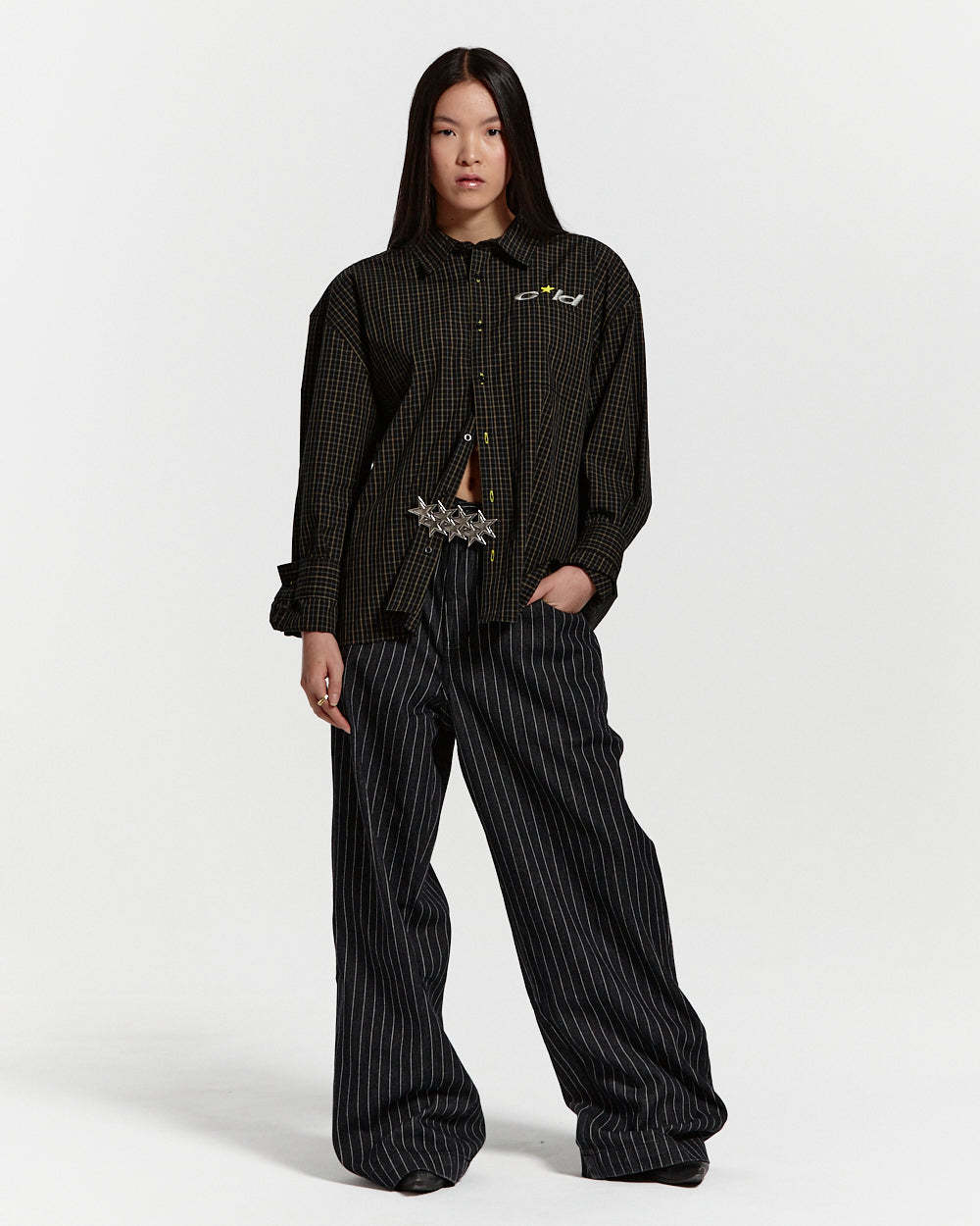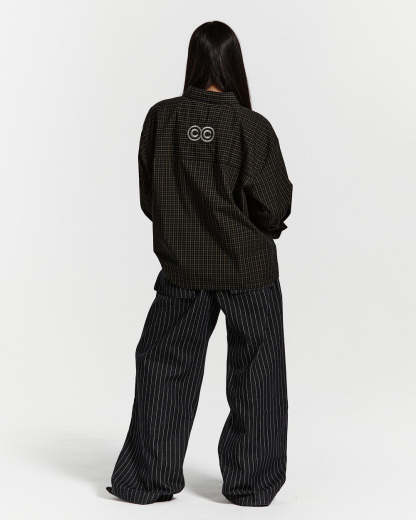 Loose-fitting straight trousers.