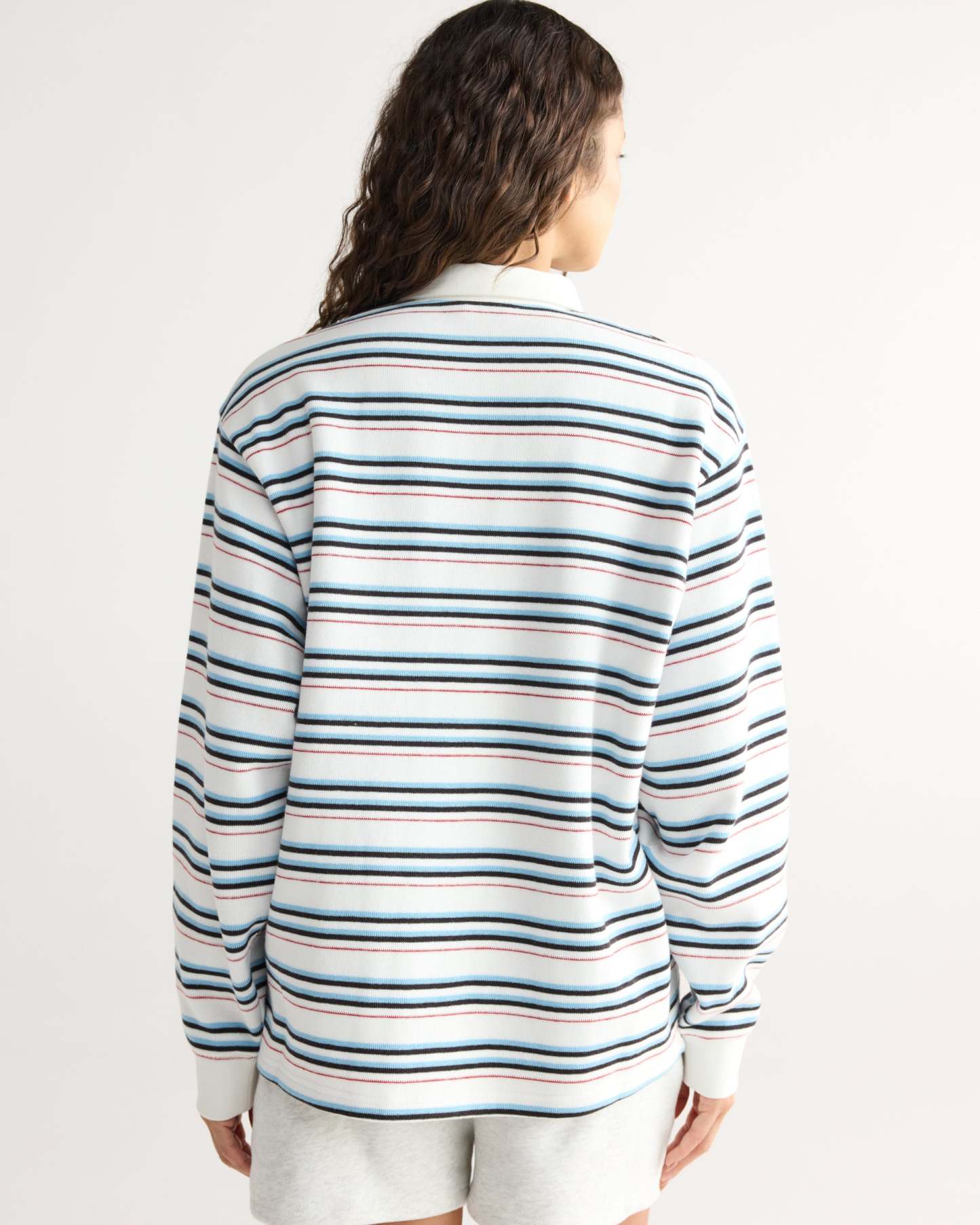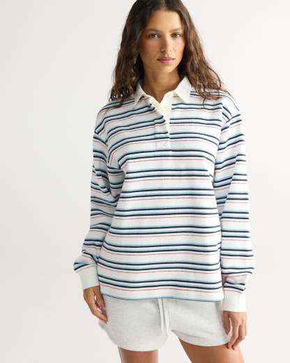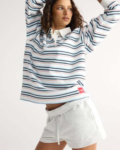 Varsity Oversized Stripe Rugby Top - Airy Blue/Marshmallow White