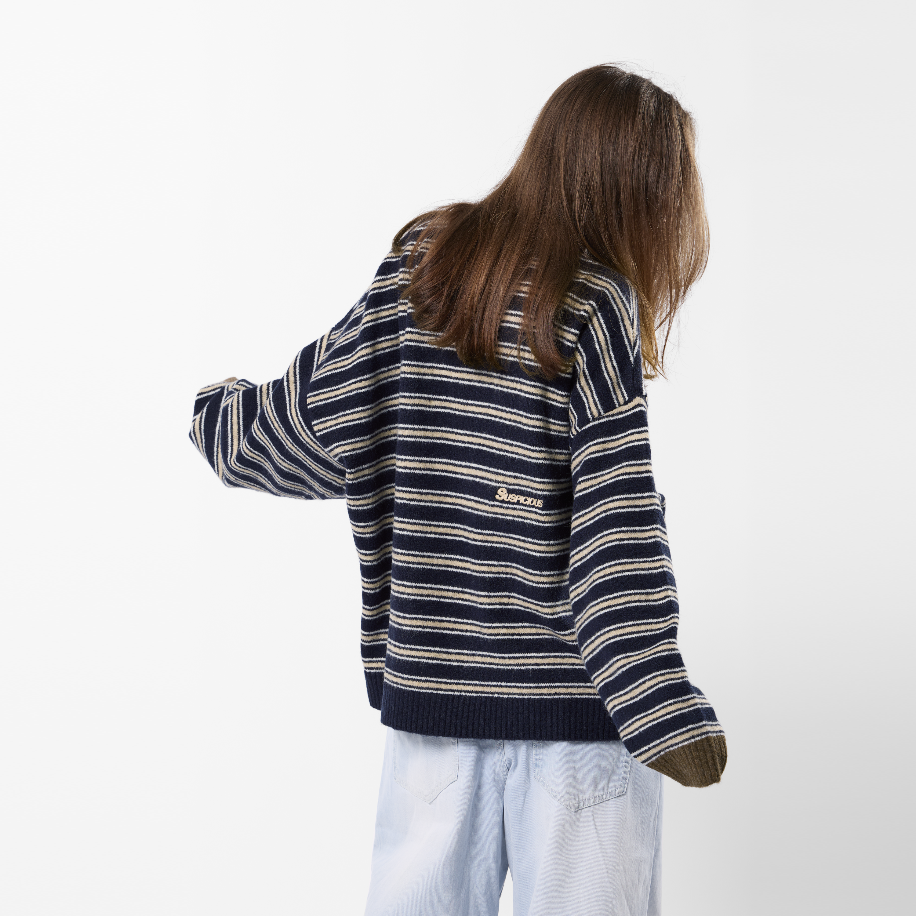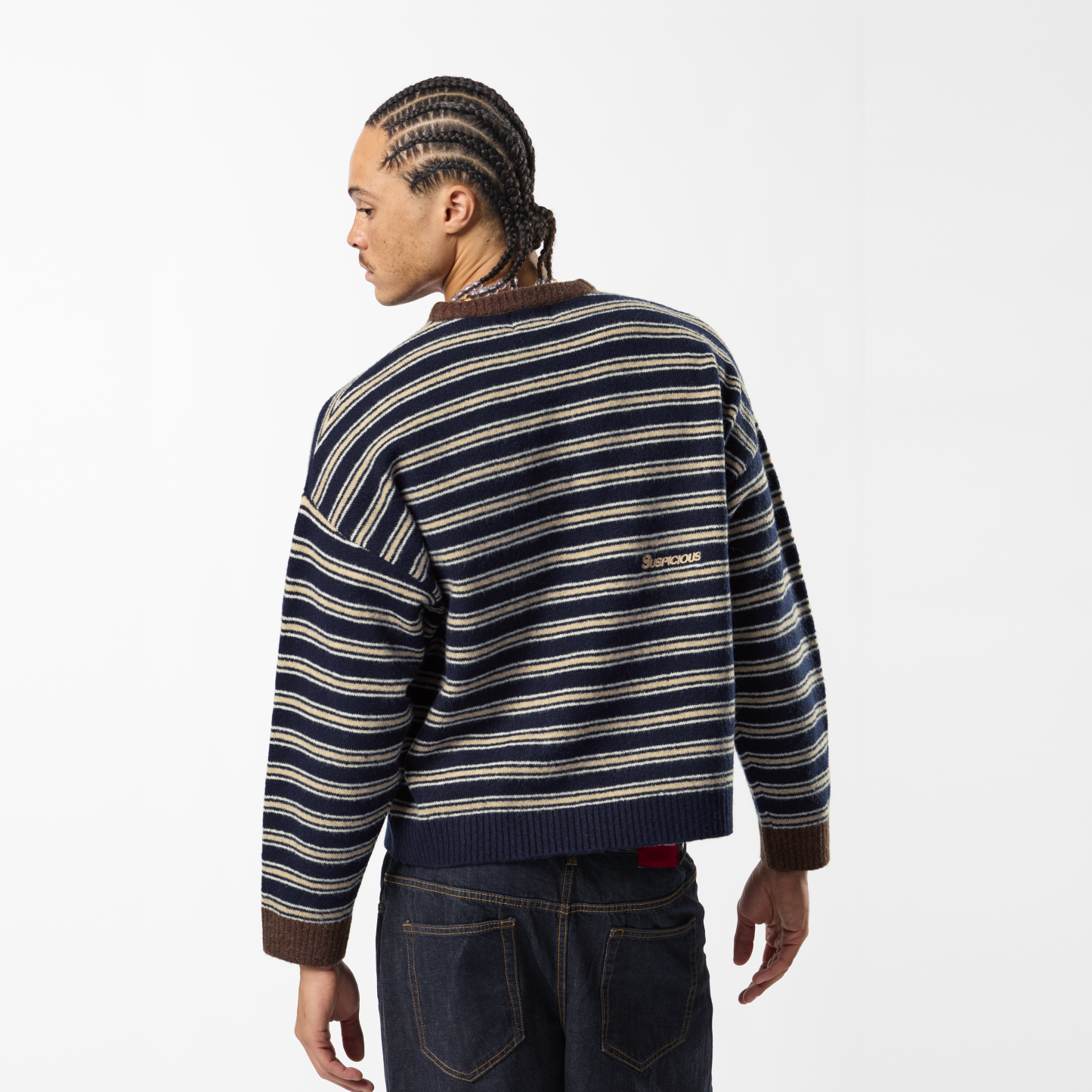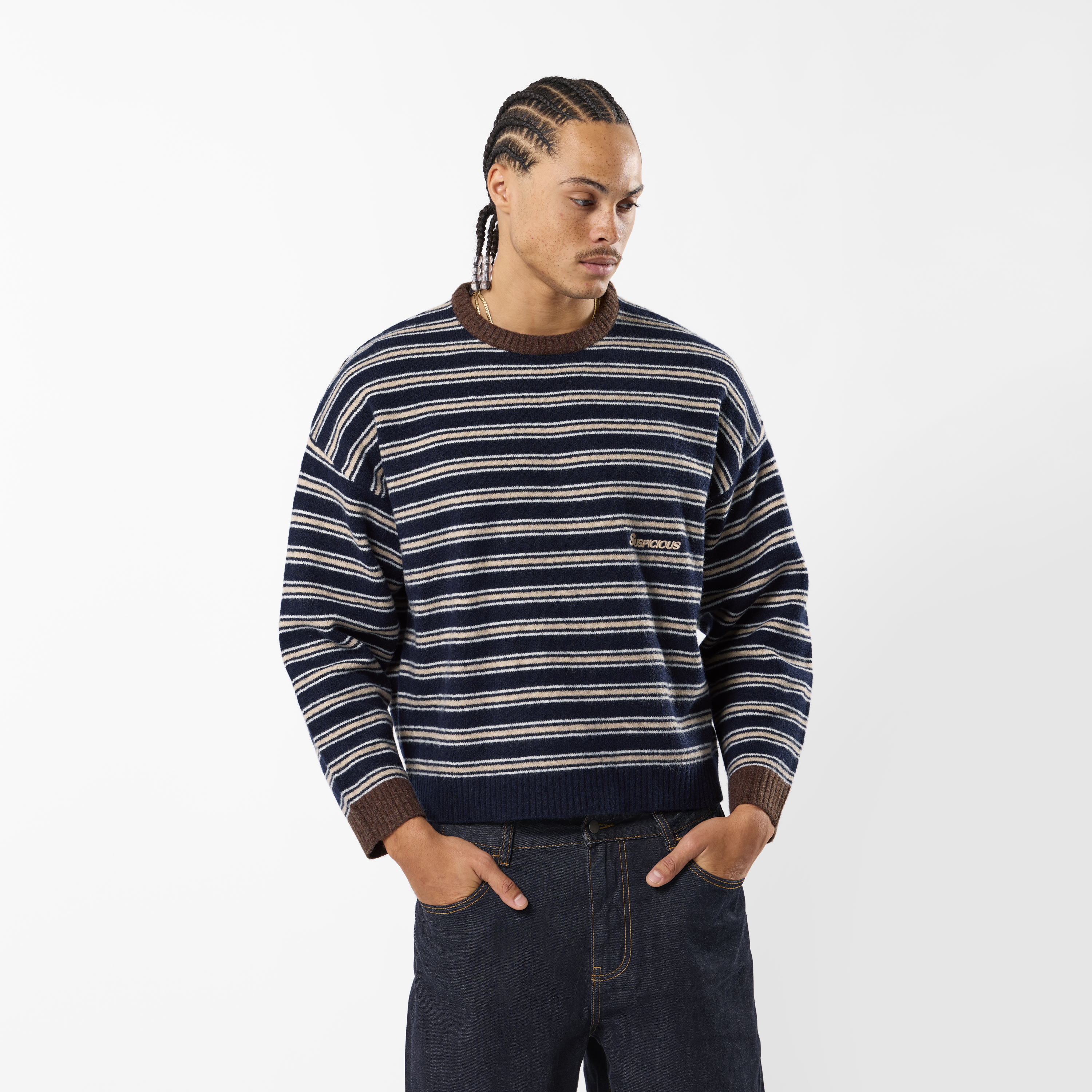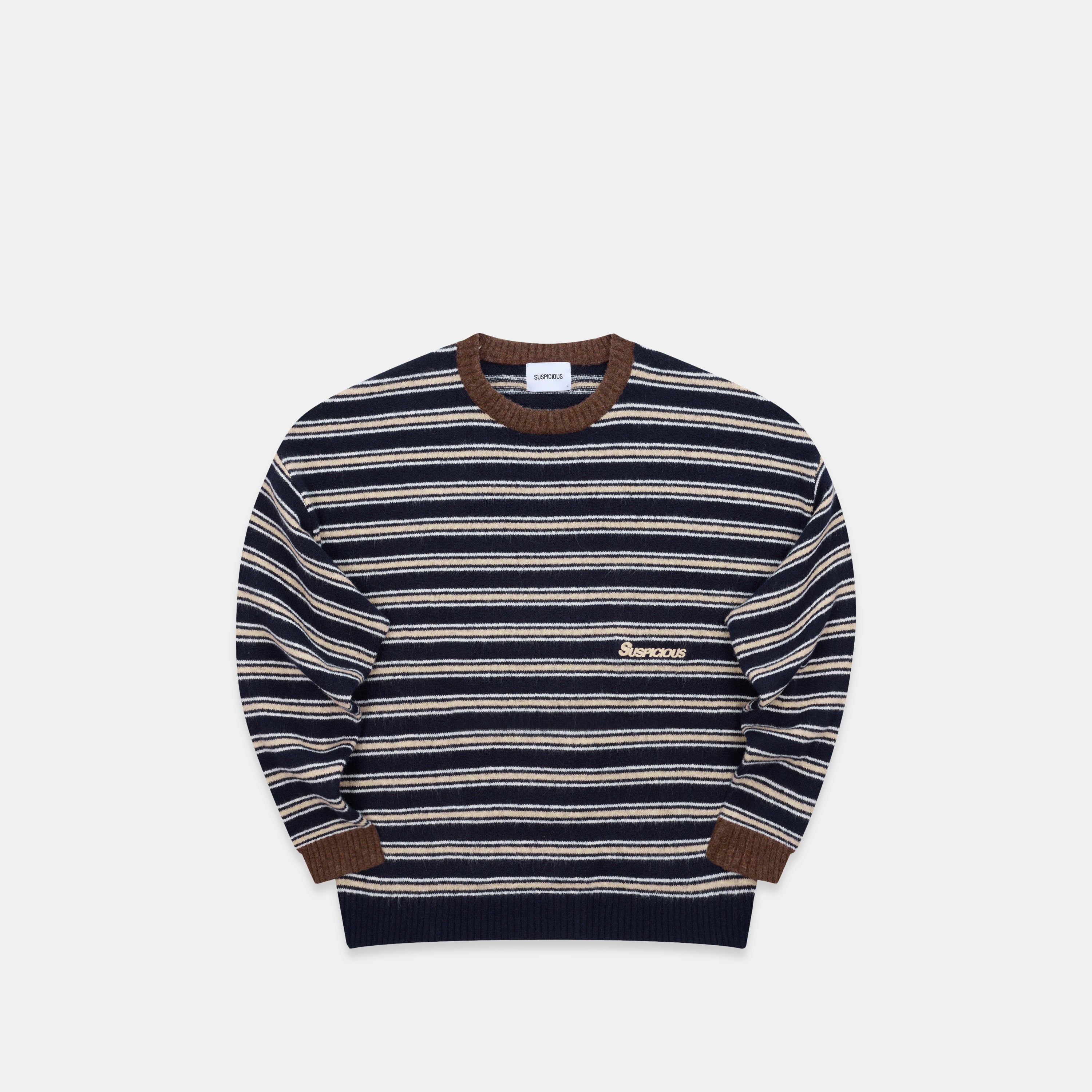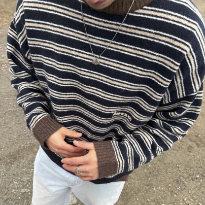 Winter3 / Striped Knitted Sweat - Blue & Brown