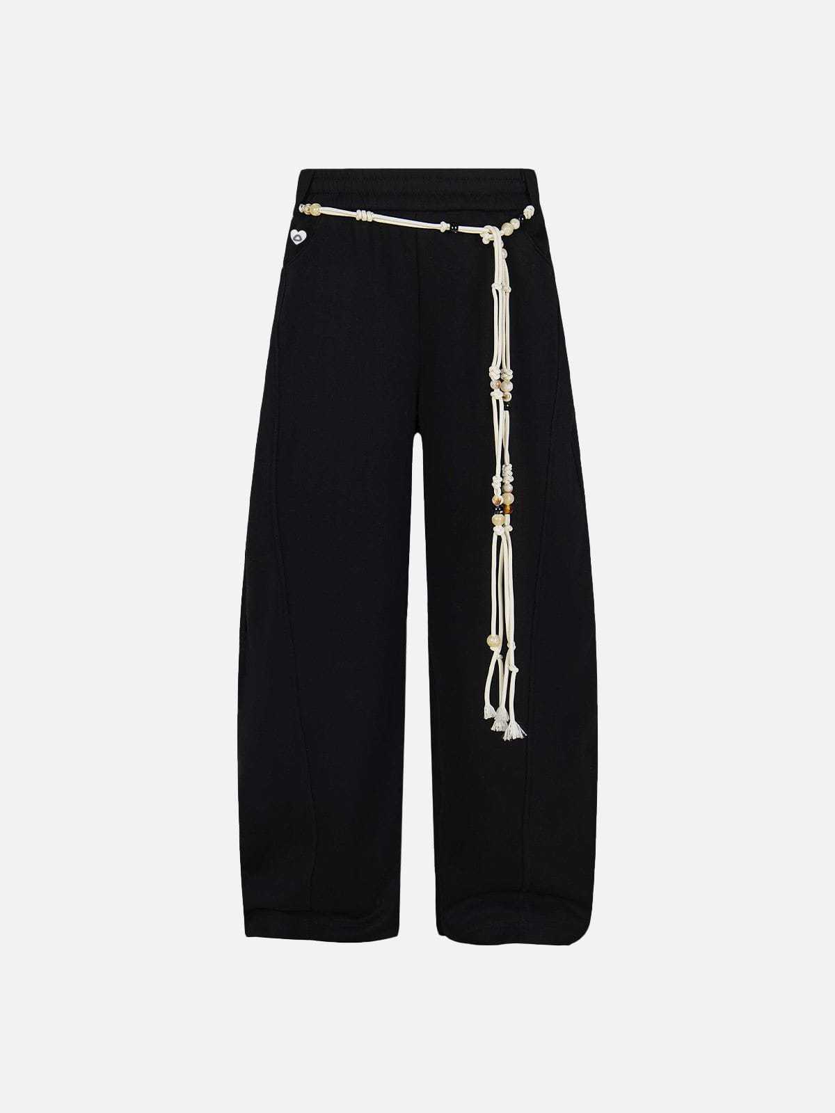 Offering a relaxed, baggy silhouette, these sweatpants blend comfort with understated elegance. The subtle bead rope detailing adds a refined touch, making them perfect for sophisticated casual looks.