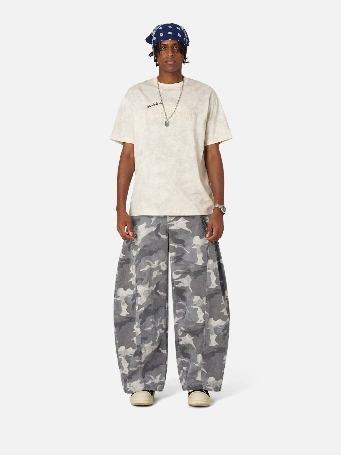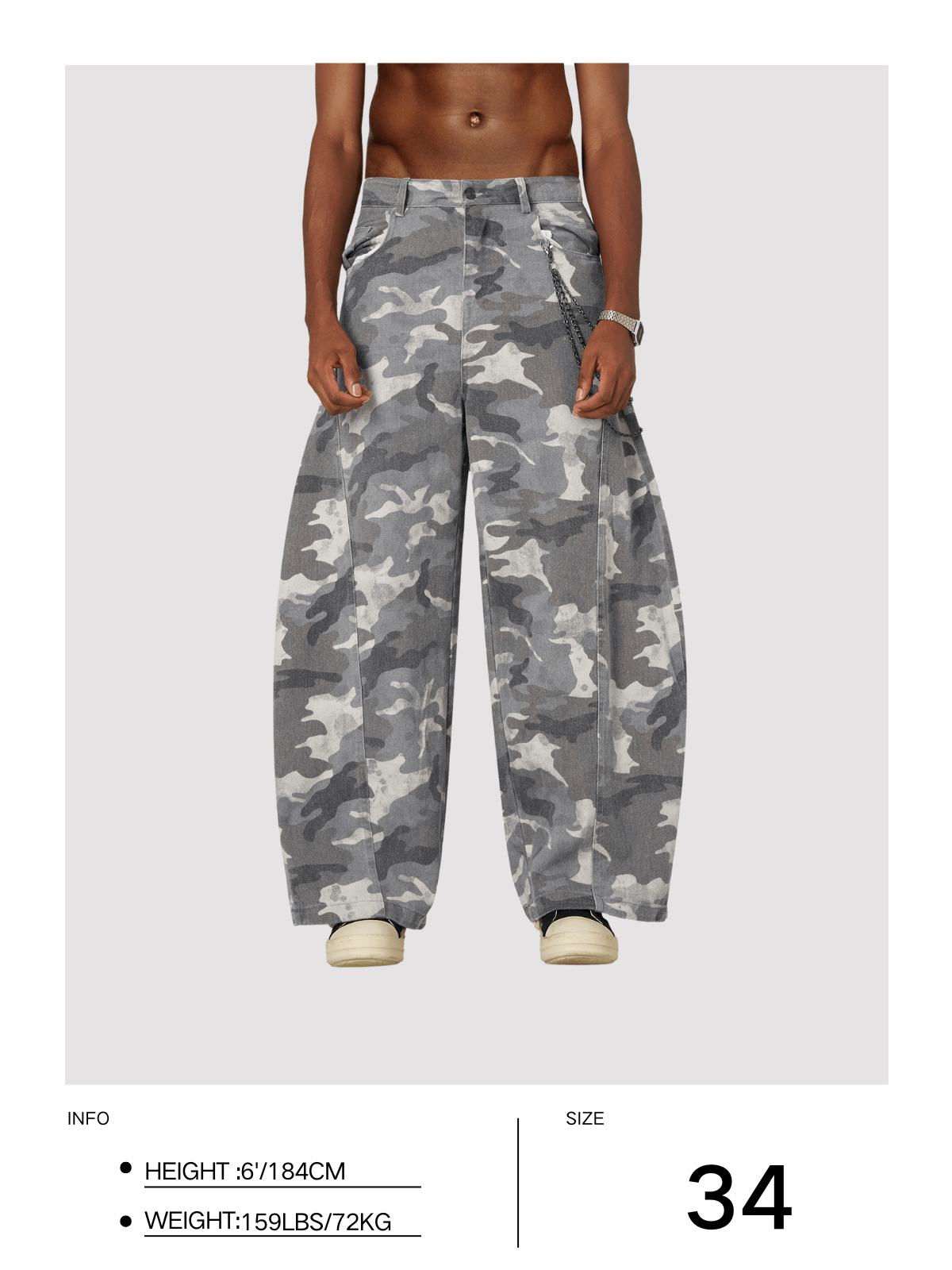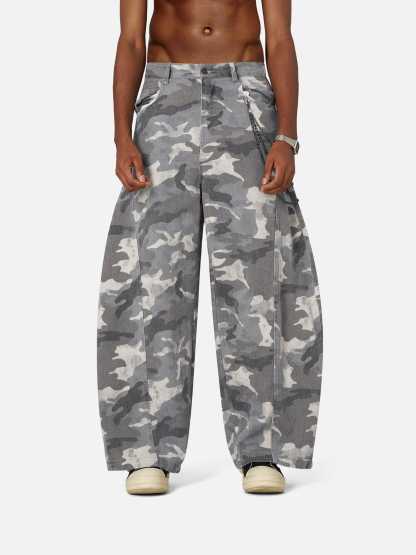 Blending classic street culture with bold camouflage, these pants redefine urban style. The signature curved cut adds a sleek, modern edge, elevating the rugged aesthetic. Tough yet refined, they’re made to stand out. Gear up and own the streets.