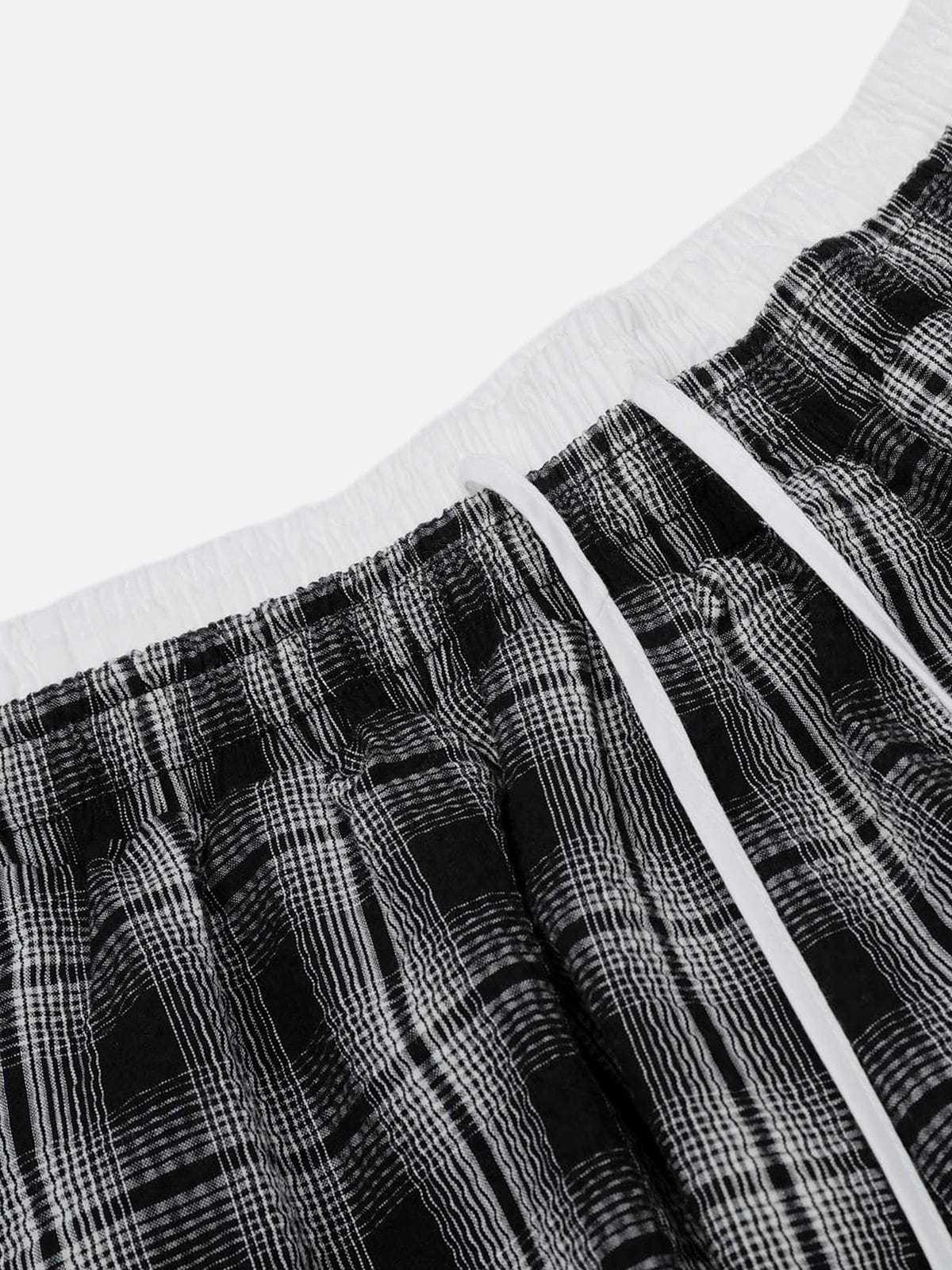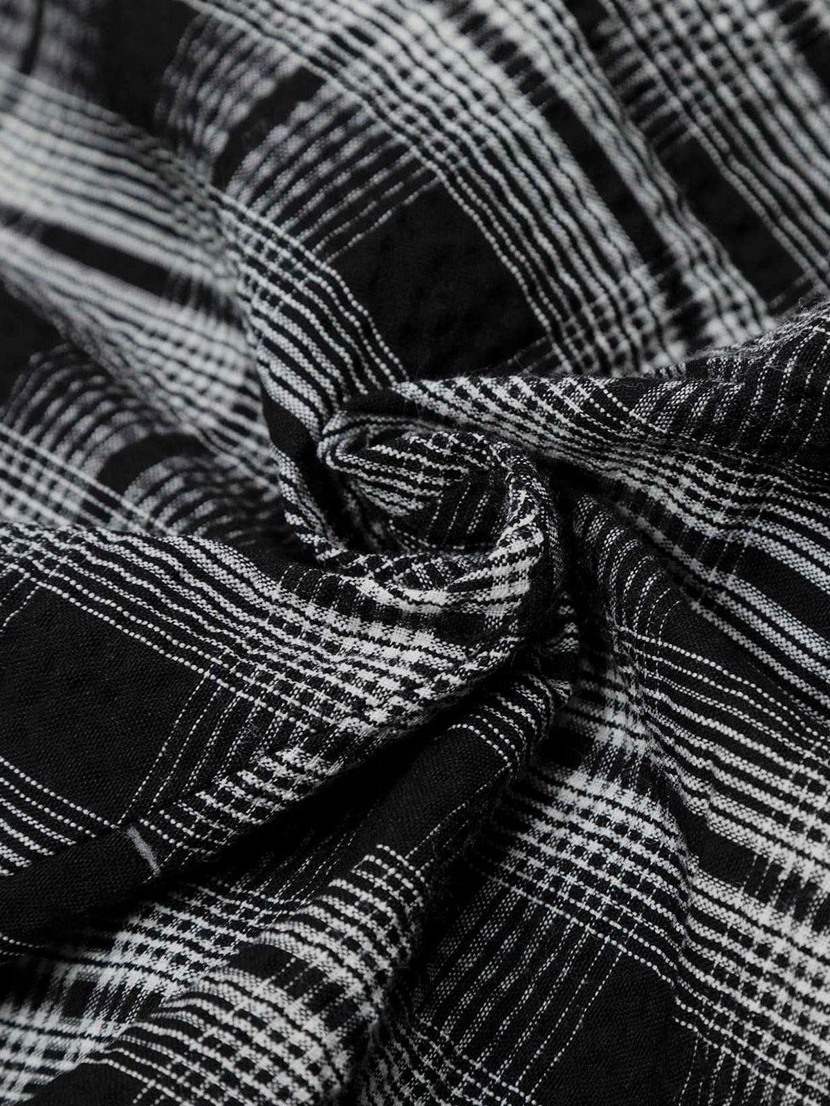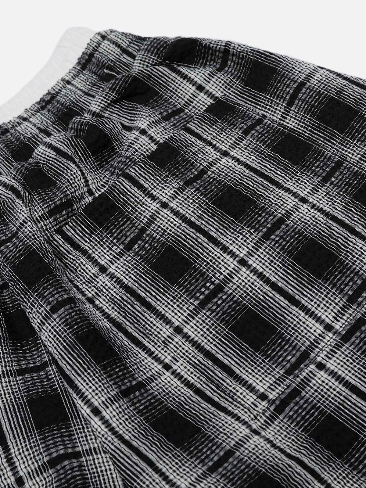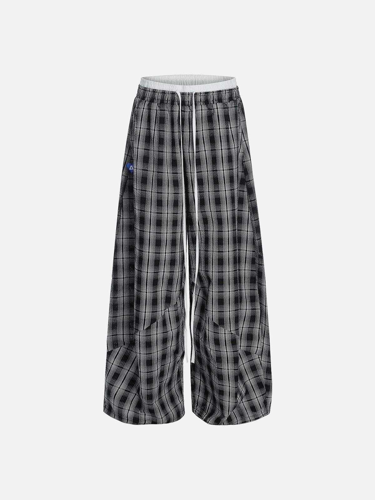 Designed for maximum volume. The double waist detail adds layered texture, while the bold plaid print keeps the look distinct and laid-back.
