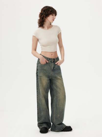 Revitalize your style with our vintage-inspired denim. These comfy, chic jeans feature subtle distressed details, a unique cut at the back, and a trendy notch design at the ankle. Embrace simplicity with a touch of artistry, capturing the essence of carefree dreaming in every pair.