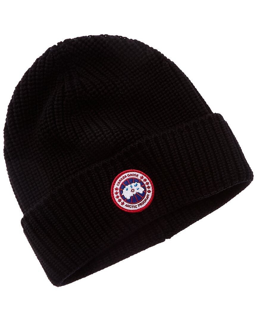 Introducing the Canada Goose Ribbed Wool Hat, an essential accessory for the modern adventurer. Crafted in Italy from 100% Merino wool, this black hat features the iconic Canada Goose logo on the front and a stylish foldover hem. Dry clean only to maintain the high-quality look and feel of this premium piece. Whether you're hitting the slopes or exploring the city, this hat combines style and performance to keep you warm and on-trend. As an authorized retailer, we guarantee that all our products, including this Canada Goose hat, are 100% genuine. Shop with confidence knowing that you're getting authentic, high-quality merchandise from trusted independent suppliers. Add this versatile accessory to your collection today and elevate your winter wardrobe with Canada Goose.