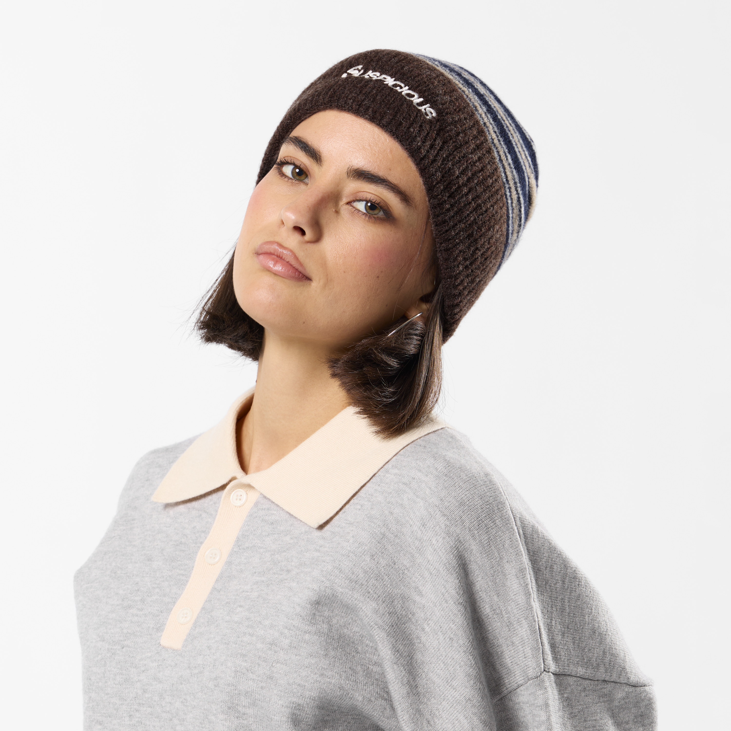 Winter3 / Striped Beanie - Blue & Brown